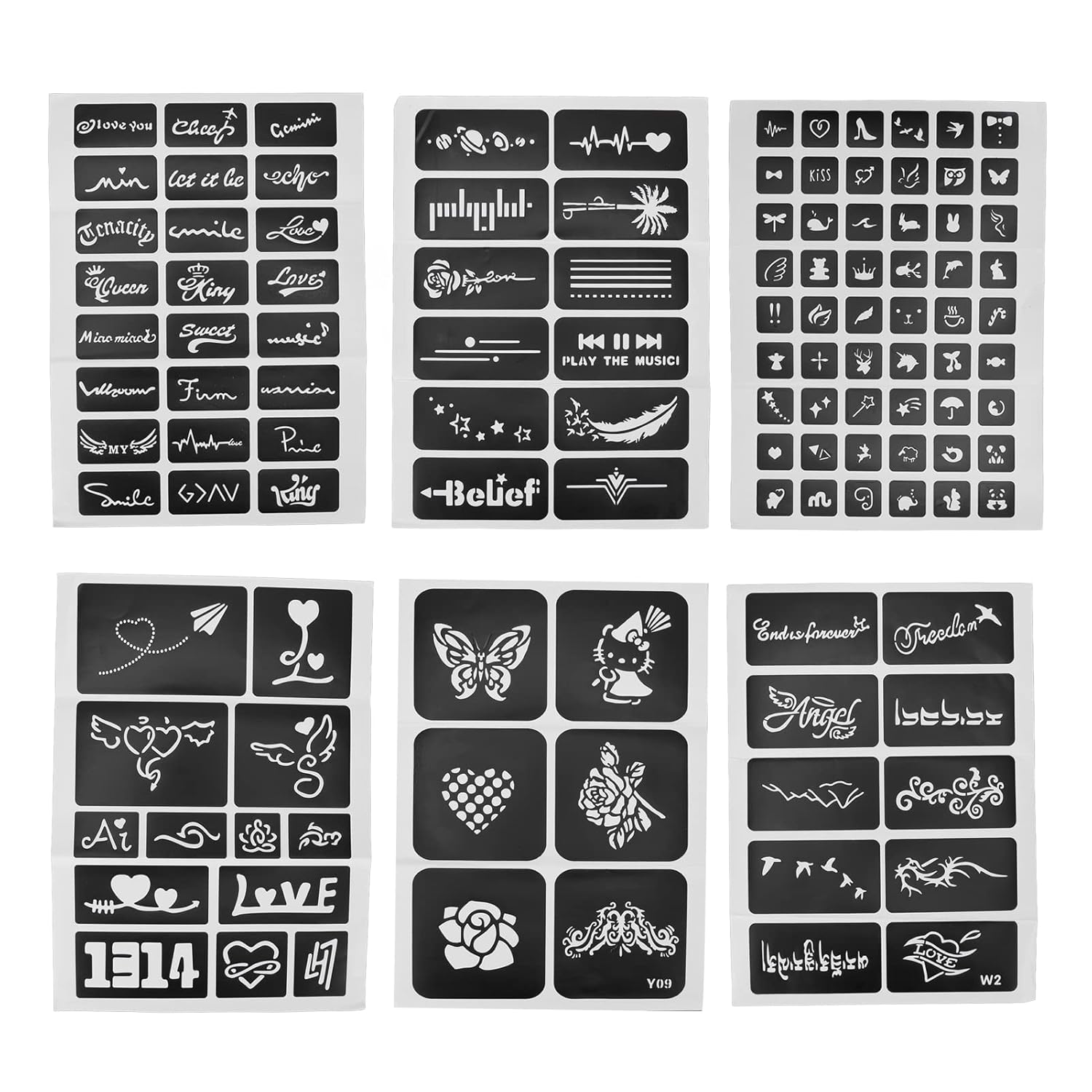 Stencil: 6 sheet of stencil, a total of 119 patterns, rich and diverse patterns, meet your different DIY needs, paste directly on the skin and paint.