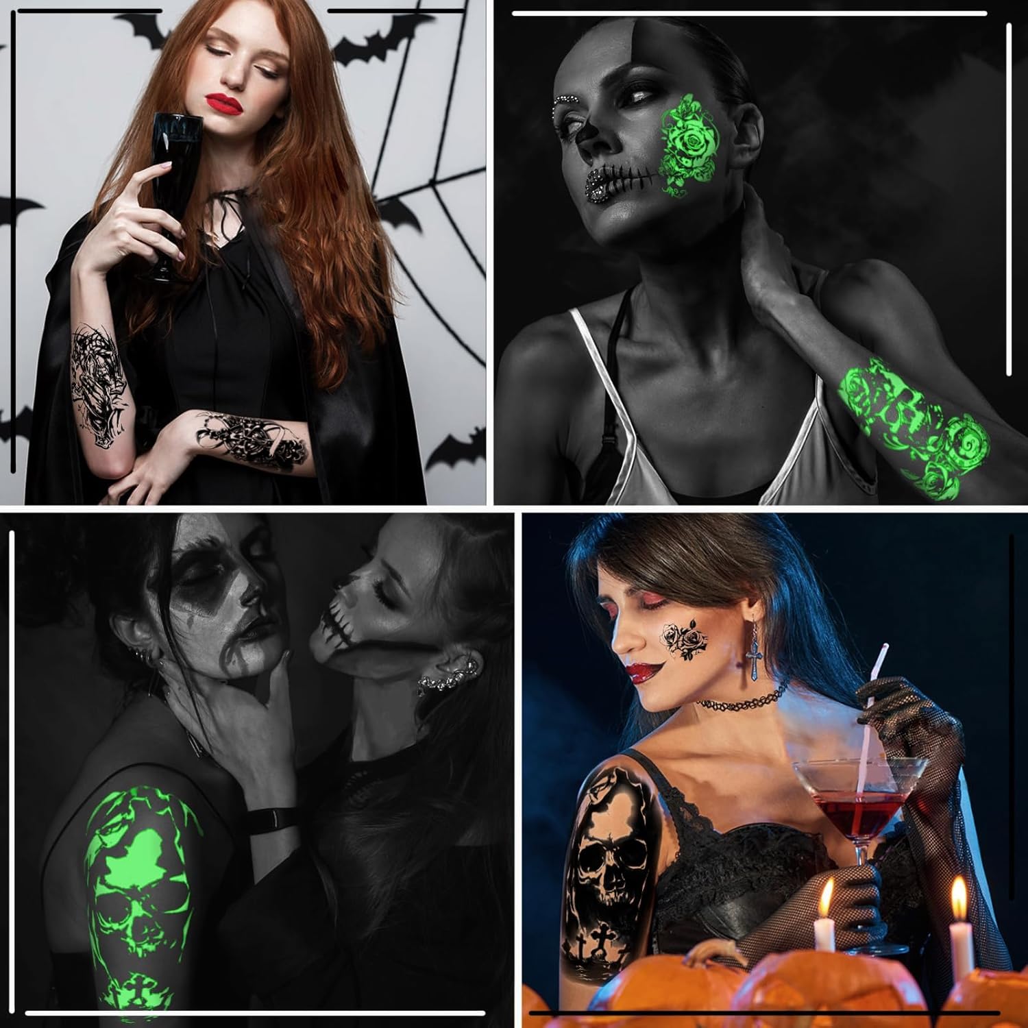 【Temporary Tattoo Set For Man Women Adults Kids】Include 24 sheets glow in dark tattoo stickers. You can share it with your family and friends