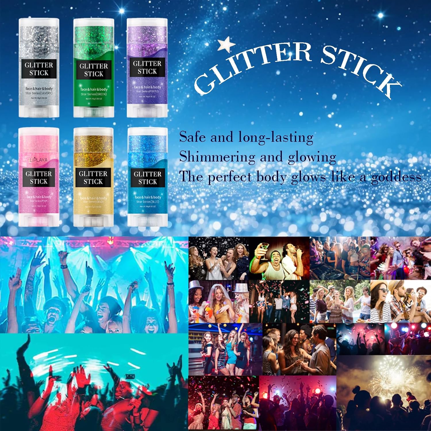 【Multiple Use】Our glitter stick can be used on your face/body/eye/Lip/hair, music festival,rave accessories, country concerts, party, christmas makeup, halloween makeup or other glittery needs.
