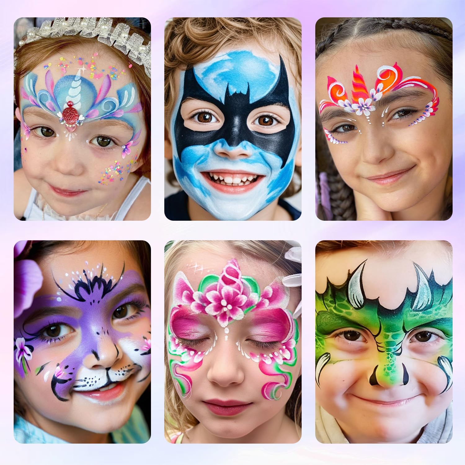 PROFESSIONAL FACE PAINTING KITS: Unlike oil-based paint; our face painting kits are water-activated, fast-drying, extremely high pigment content, long-lasting and excellent coverage, colorful to meet your multiple patterns of painting, and even if you're not a professional face painter, you can learn quickly by following our instructions. If you have any questions about the face painting kit, please feel free to contact us, our after-sales service staff will provide you with 24 hours service and assistance.