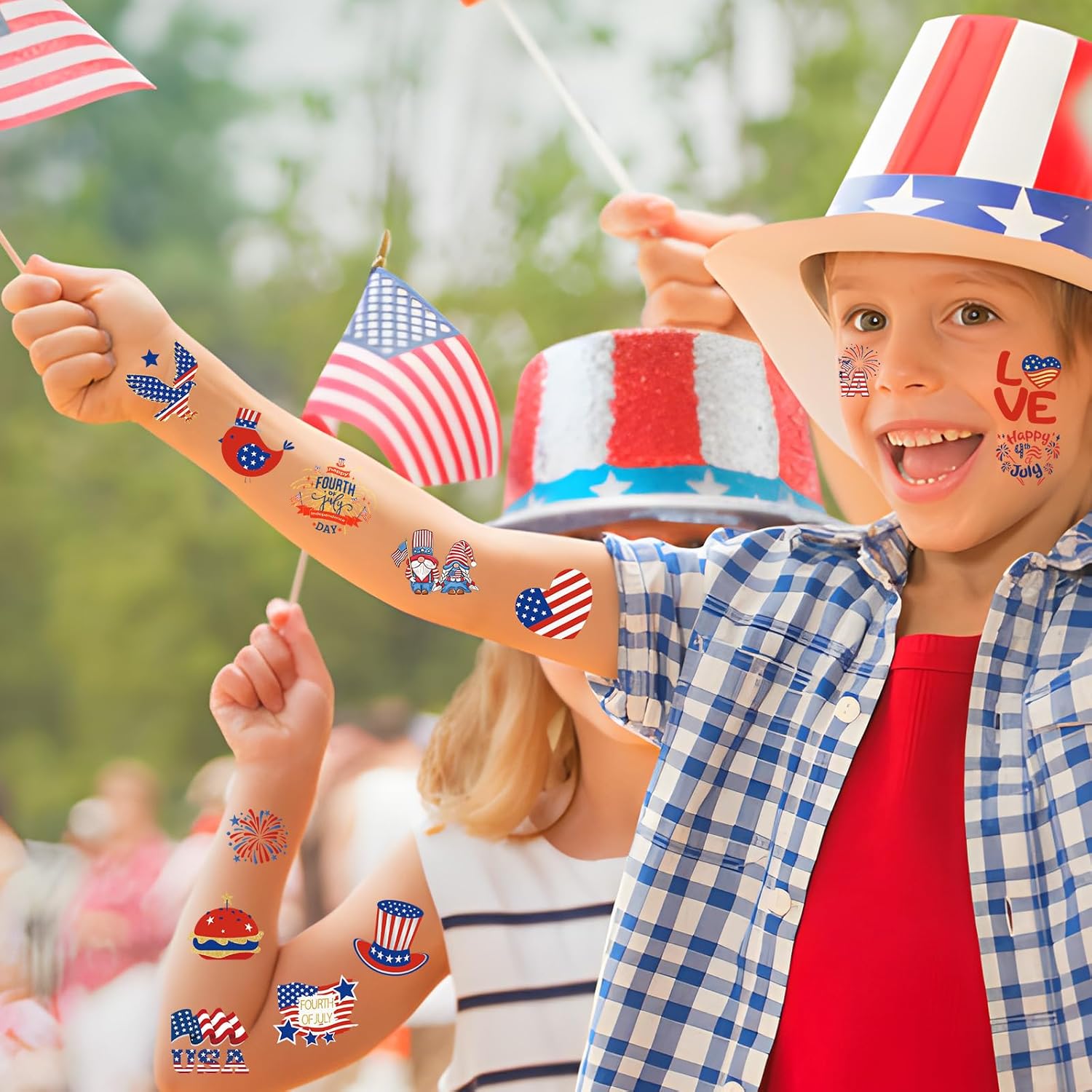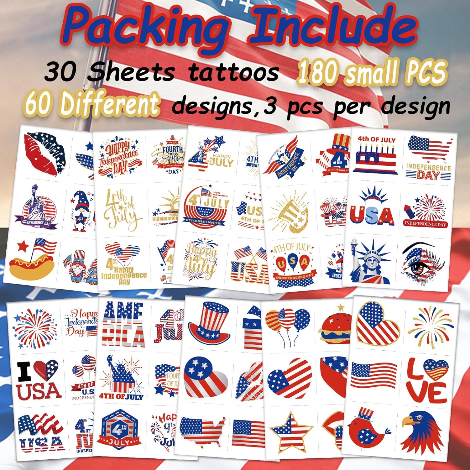 Vibrant, Long-Lasting Color Quality Features highly pigmented kiss designs in striking reds and classic black, paired with bright patriotic colors that resist fading during wear, ensuring eye-catching appeal for 2-4 days.