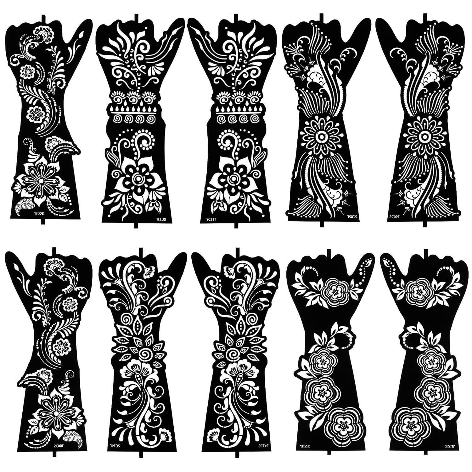 COMPREHENSIVE PACKAGE - Our henna stencil set includes 10 sheets (5 pairs), with each pair consisting of left and right designs, allowing for symmetrical application on both hands. Whether you're crafting elaborate hand designs or intricate forearm patterns, our versatile stencils provide the perfect canvas for your artistic expression.