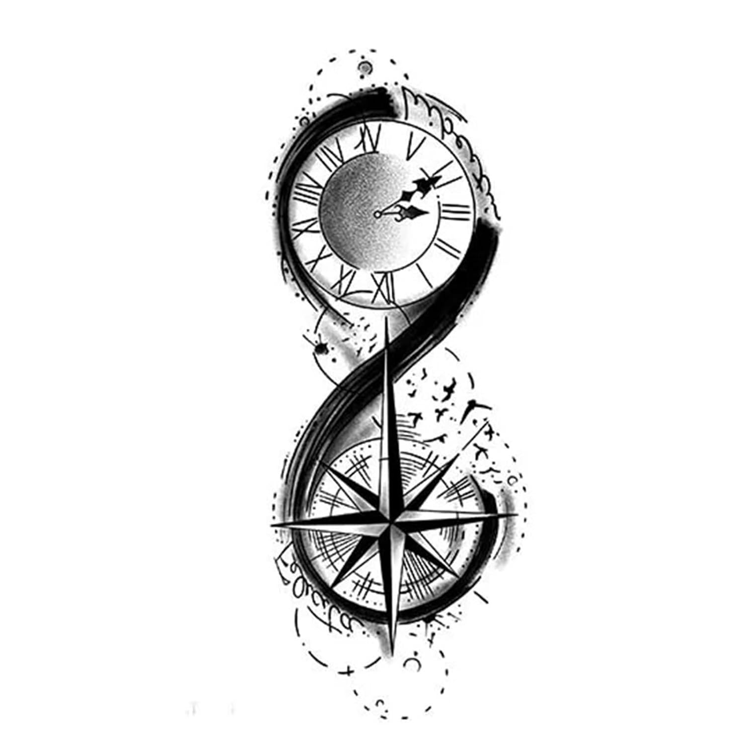 Lasting 15 Days Temporary Tattoos Sticker Waterproof Non-reflective Compass Pattern Stickers Body Art Fake Tattoo On Boy's Arm(2pcs)(2pcs)
