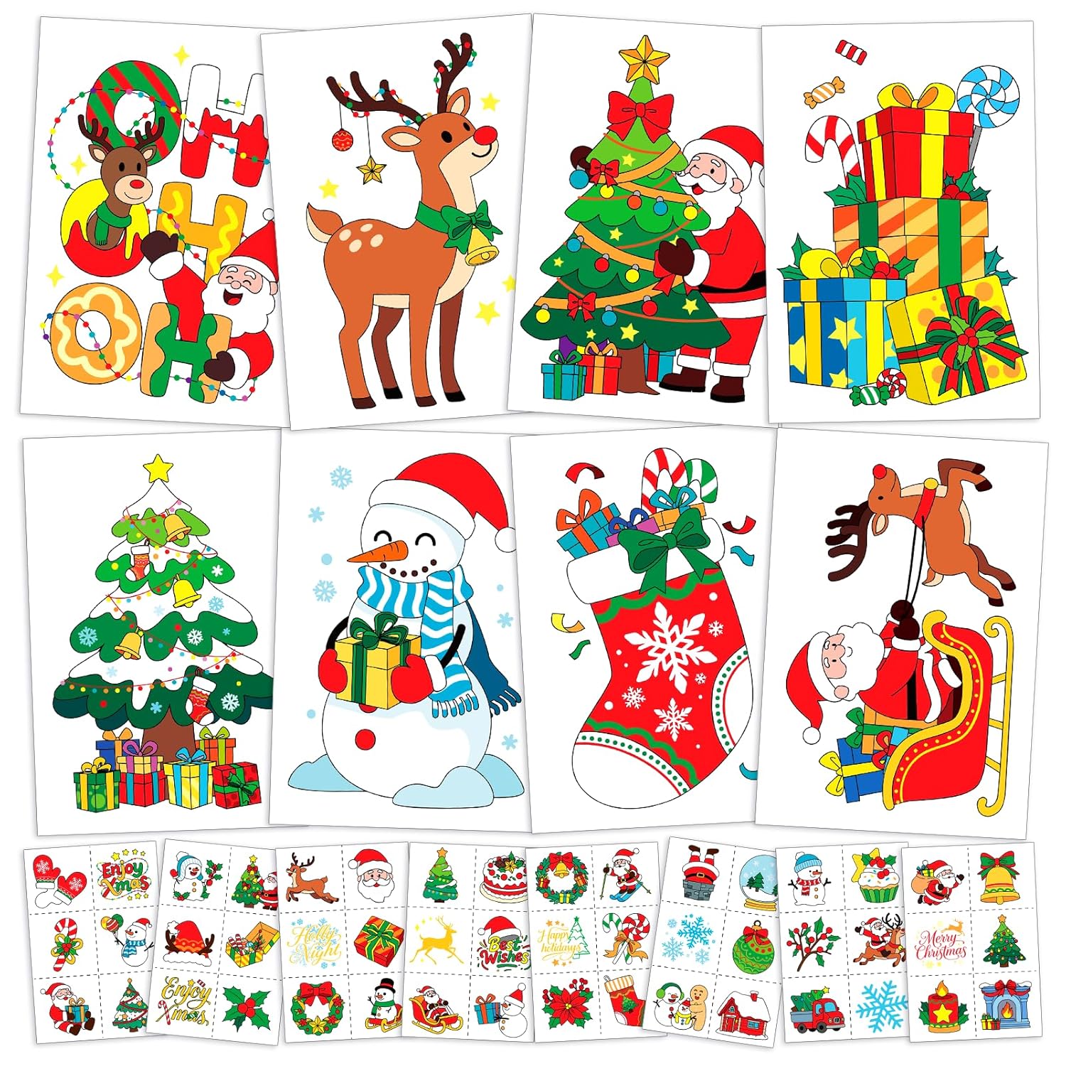Stocking Stuffers: Christmas tattoos for kids and adults include 8 designs measuring 3.15 x 4.72 inches and 48 designs measuring 1.57 x 1.57 inches with pre-cut perforated lines, featuring various styles. Our Christmas temporary tattoos are waterproof, colorfast, odorless, tear-resistant, safe, and friendly for children and adults alike