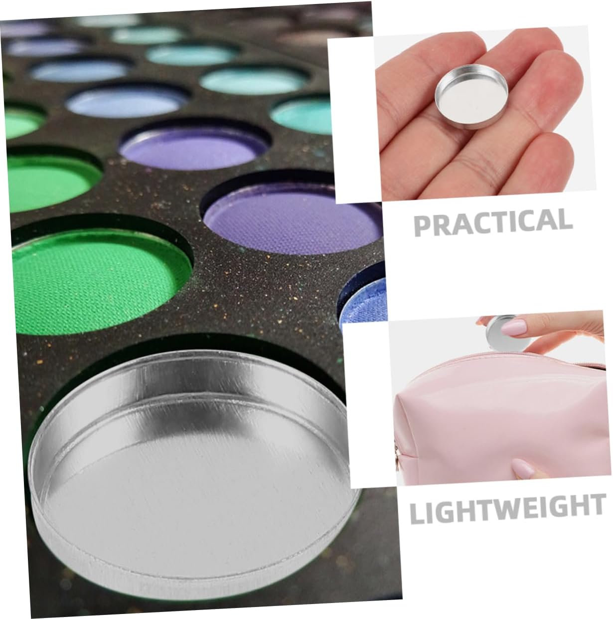 Small eyeshadow pan--a compact and lightweight aluminum material that ensures long-lasting durability,eyeshadow holder