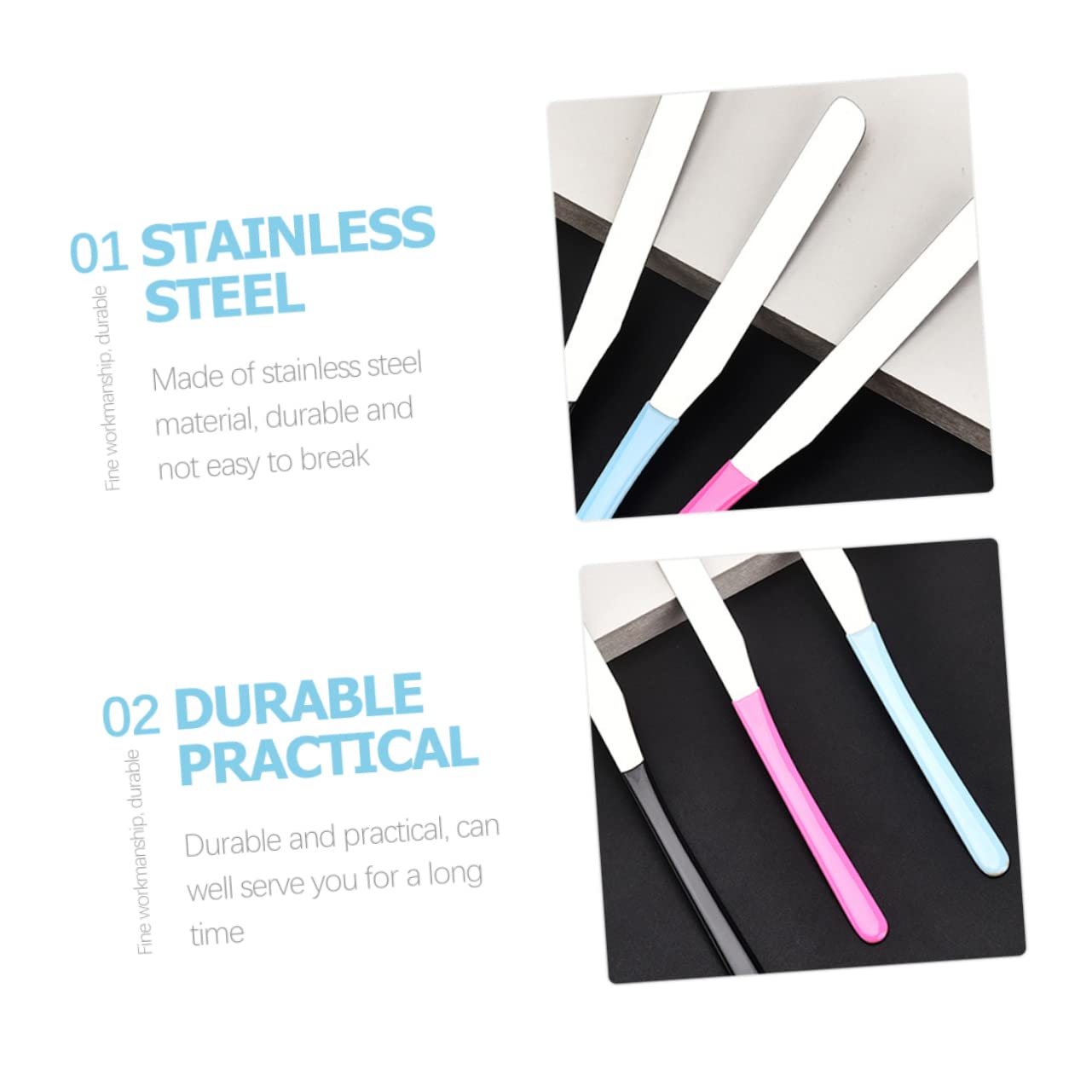 Makeup mixing spatula:made of good material, sturdy and durable, the makeup spatula is not easy to deform or break,stainless steel makeup spatula