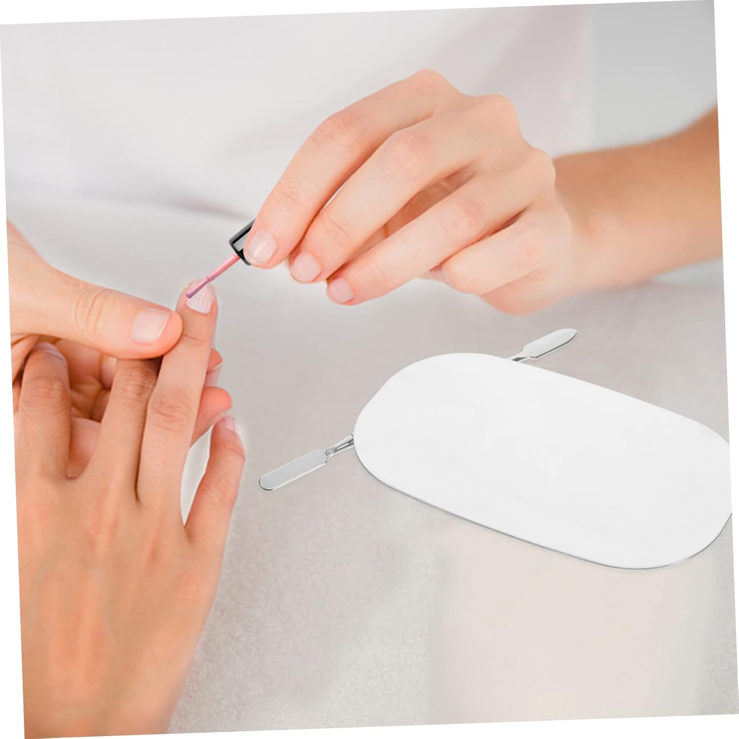 Small makeup mixing tray:it's easier to use with a palette stick, small enough to put in a bag or carry around,Stainless Steel Makeup Plate
