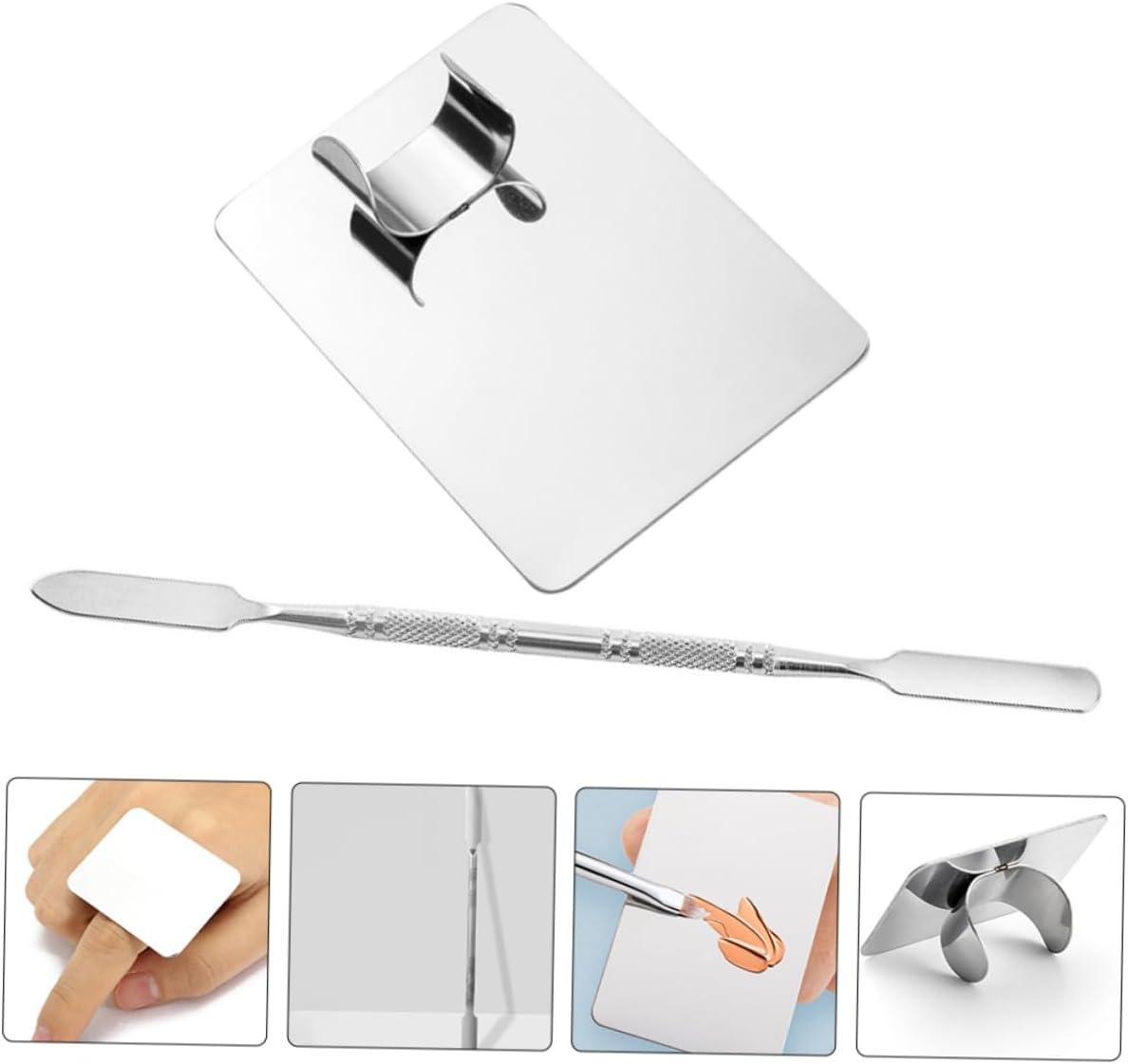 Nail color mixing:the color mixing plate and spatula set is designed for nail pigments mixing, pigments mixing, pigment blending,blending plate makeup