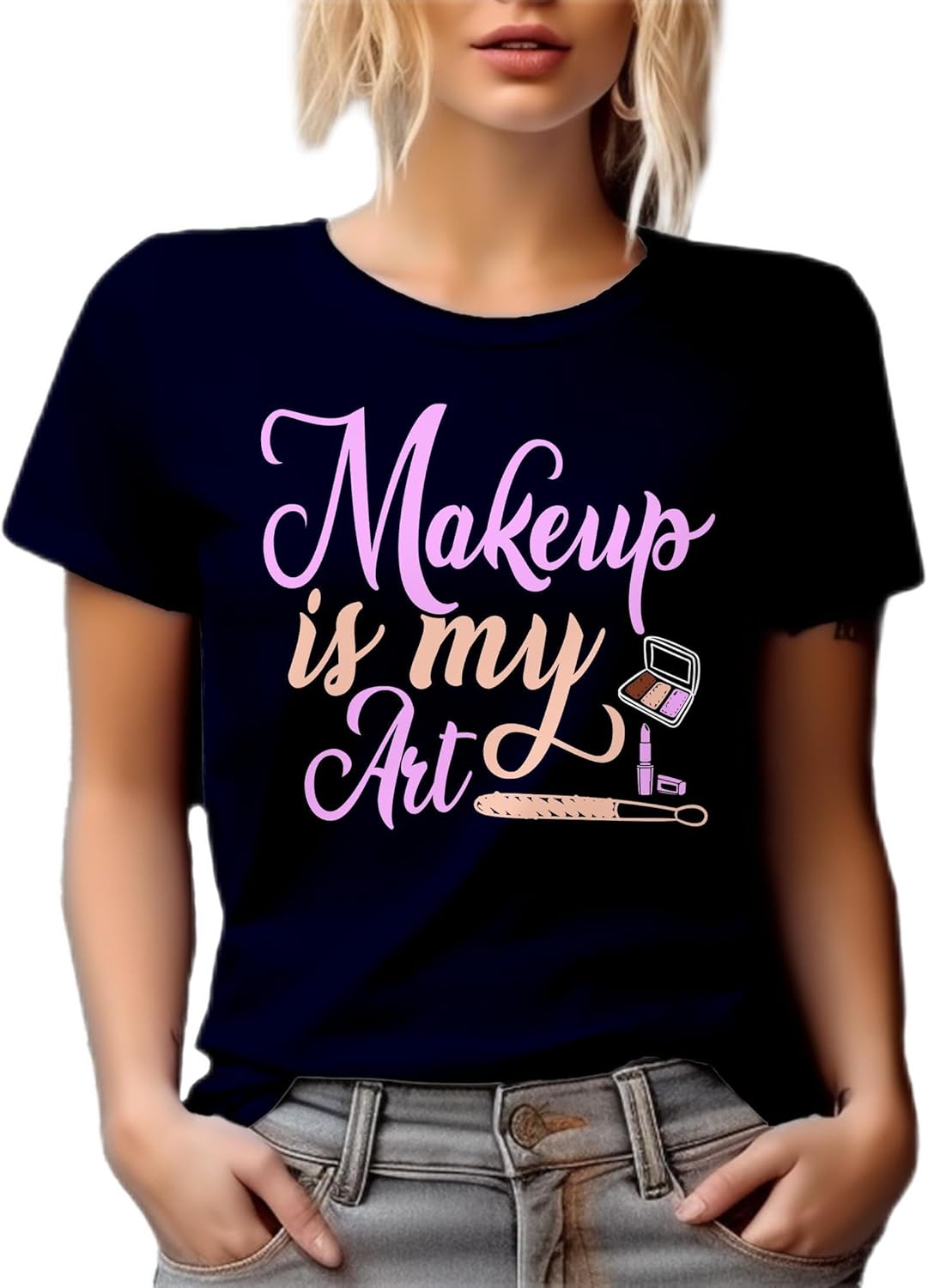 Novelty T-Shirt, Makeup is My Art with Eyeshadow Palette(Black,3X-Large)