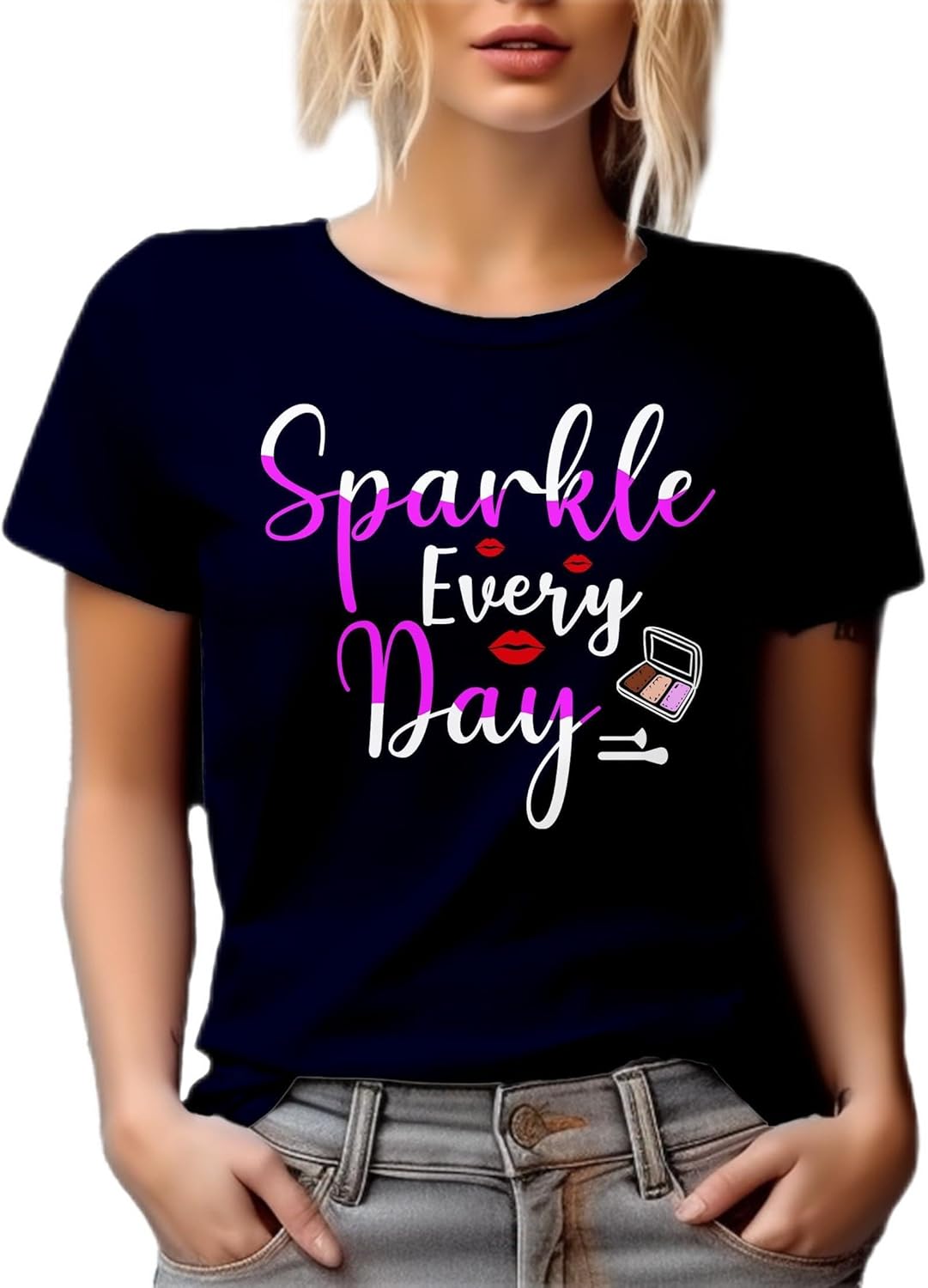 Novelty T-Shirt, Sparkle Every Day with Eyeshadow Palette(Black,3X-Large)