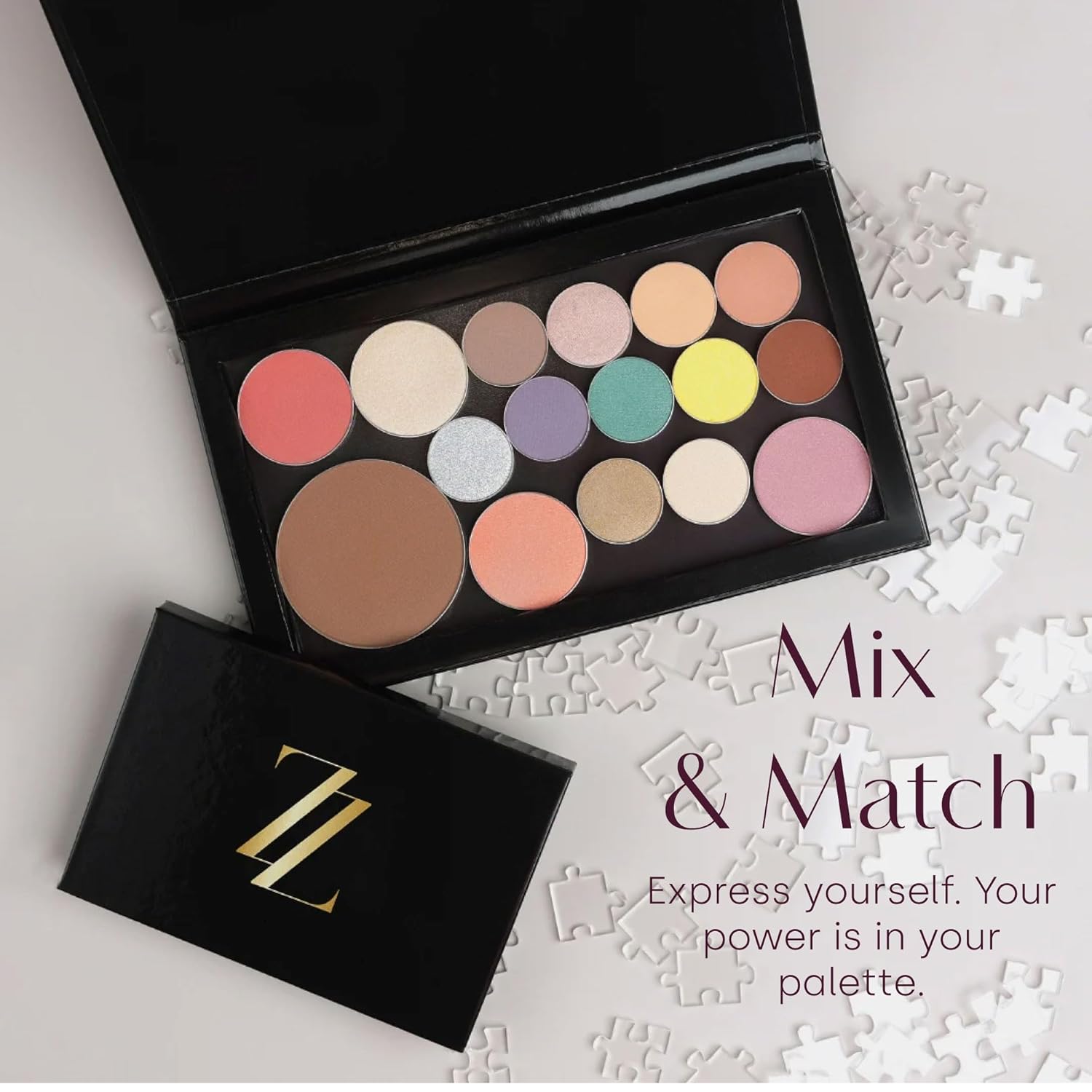 HOW TO USE: Simply pop in our low-waste pans - powders, eyeshadows, highlighters, bronzers, & blush - and indulge in all the Puzzle pieces you desire without polluting the planet — a win for you, and a win for the environment.