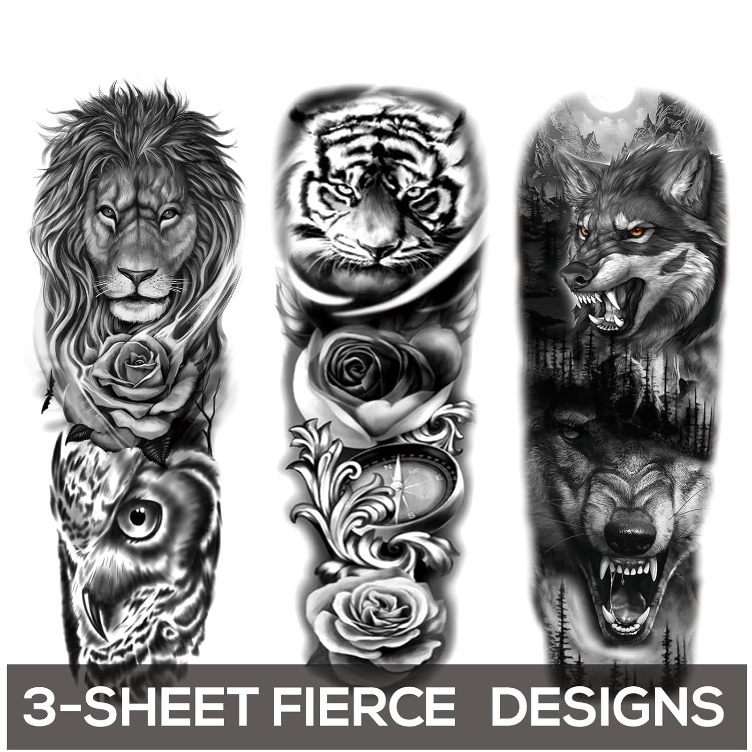 Realistic Animal Sleeve Tattoo Stickers, Full Arm Fake Tempoary Tattoo Sleeve For Men Women Large Temp Tatoo Body Art Makeup,3-Sheet