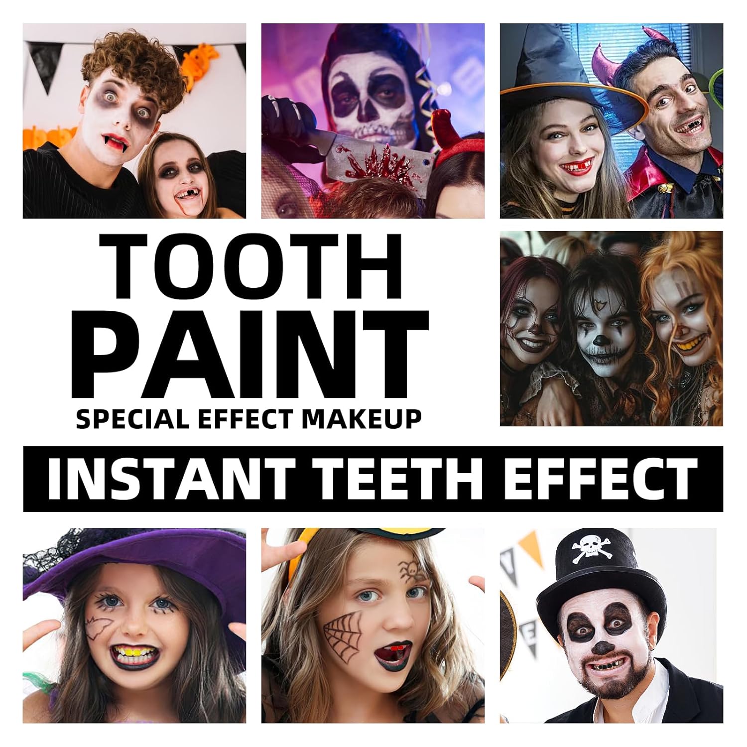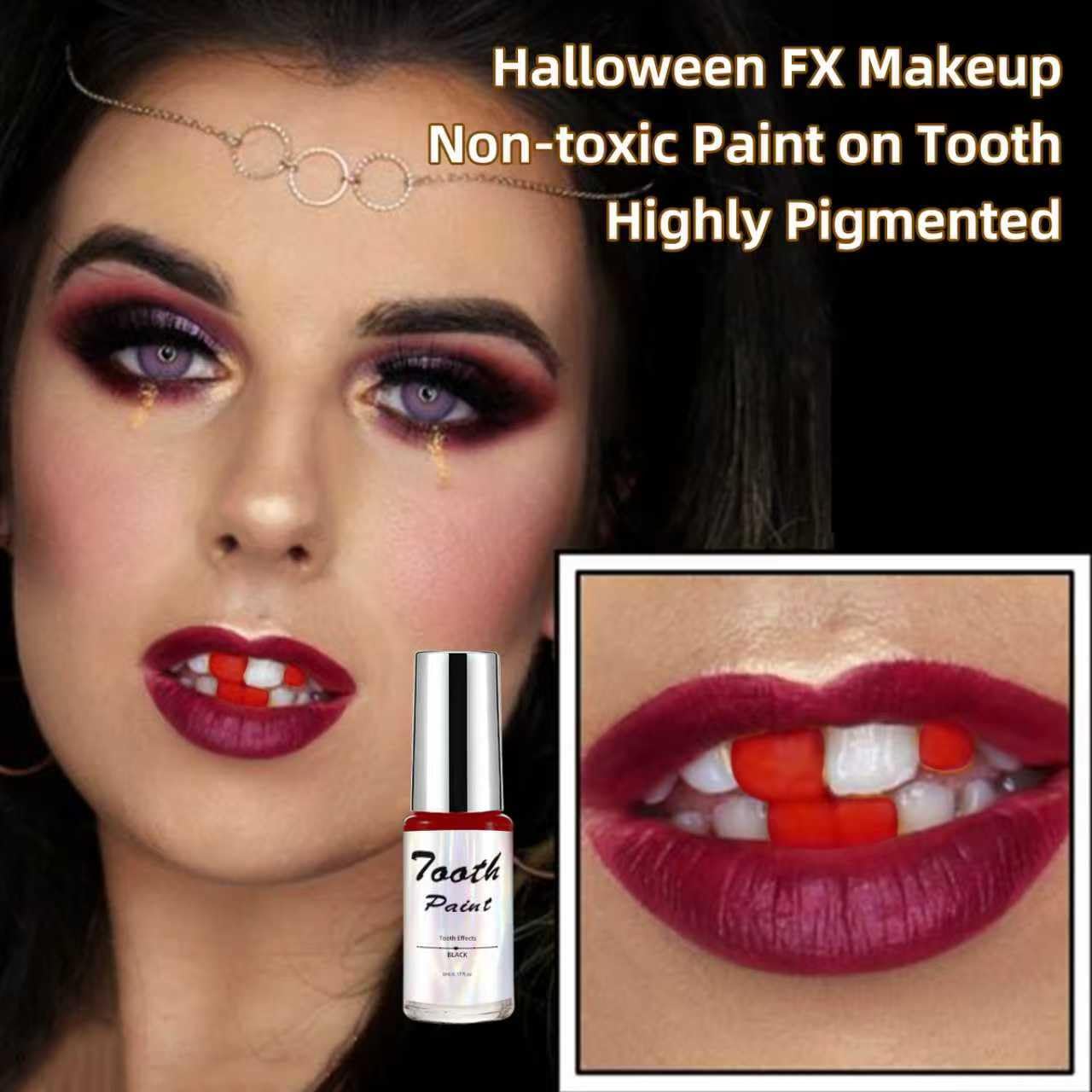 Professional FX Makeup Tooth Paint - Provides excellent coverage and smooth appearance on teeth for stunning special effects makeup.3 colors can choose:Black,Red,Gold.To help you create many different effects.