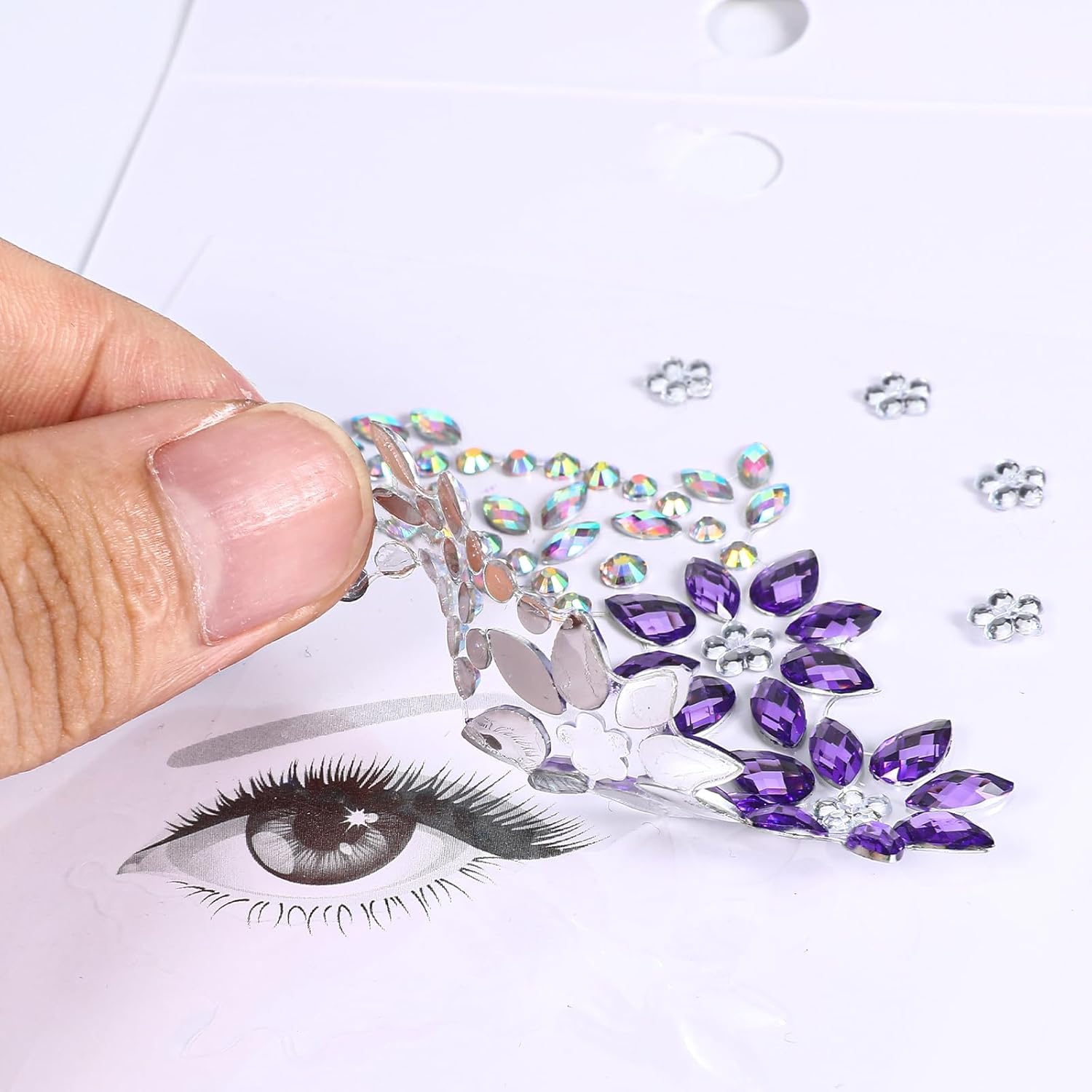 【Assorted Face Jewels Looks】Thse colorful face rhinestones are crafted from high-quality materials, and our rhinestone makeup face jewel stickers are safe for all skin types. The adhesive ensures comfort and prevents irritation, allowing you to enjoy your festivities without any worries. The self-adhesive gems are suitable for faces, eyes, bodys. Sibba face temporary tattoos are perfect for sensitive skin, these gems are gentle yet durable.