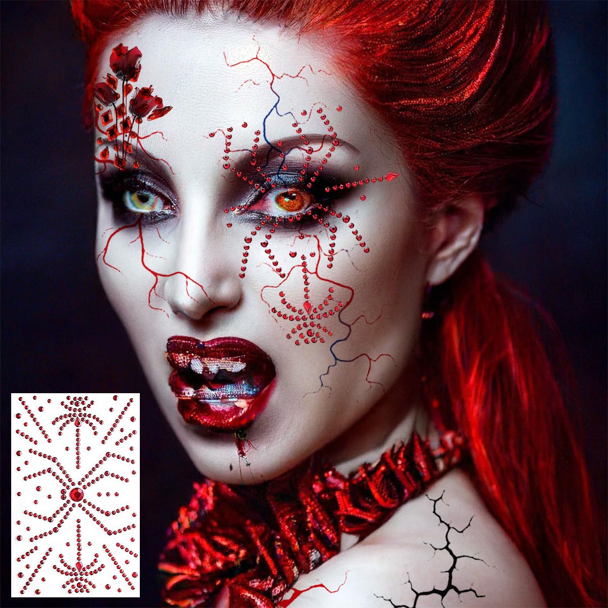Easy to Apply: Halloween face tattoos stickers is self-adhesive, so the face crystals are very easy to attach, just peel them off the backing paper and stick them according to the design, no need to use extra glue
