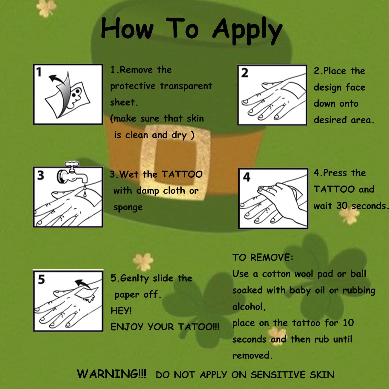 ⚡Multifunction Uses -- These awesome kids St. Patrick's Day tattoos can be used in various occasions, birthday parties, gift bag fillers, party favors for kids,Irish party supplies, St. Patrick's Day gifts!! You can apply them to your body or some smooth objects, for example, glass, stationery, paper, stainless steel, plastic.