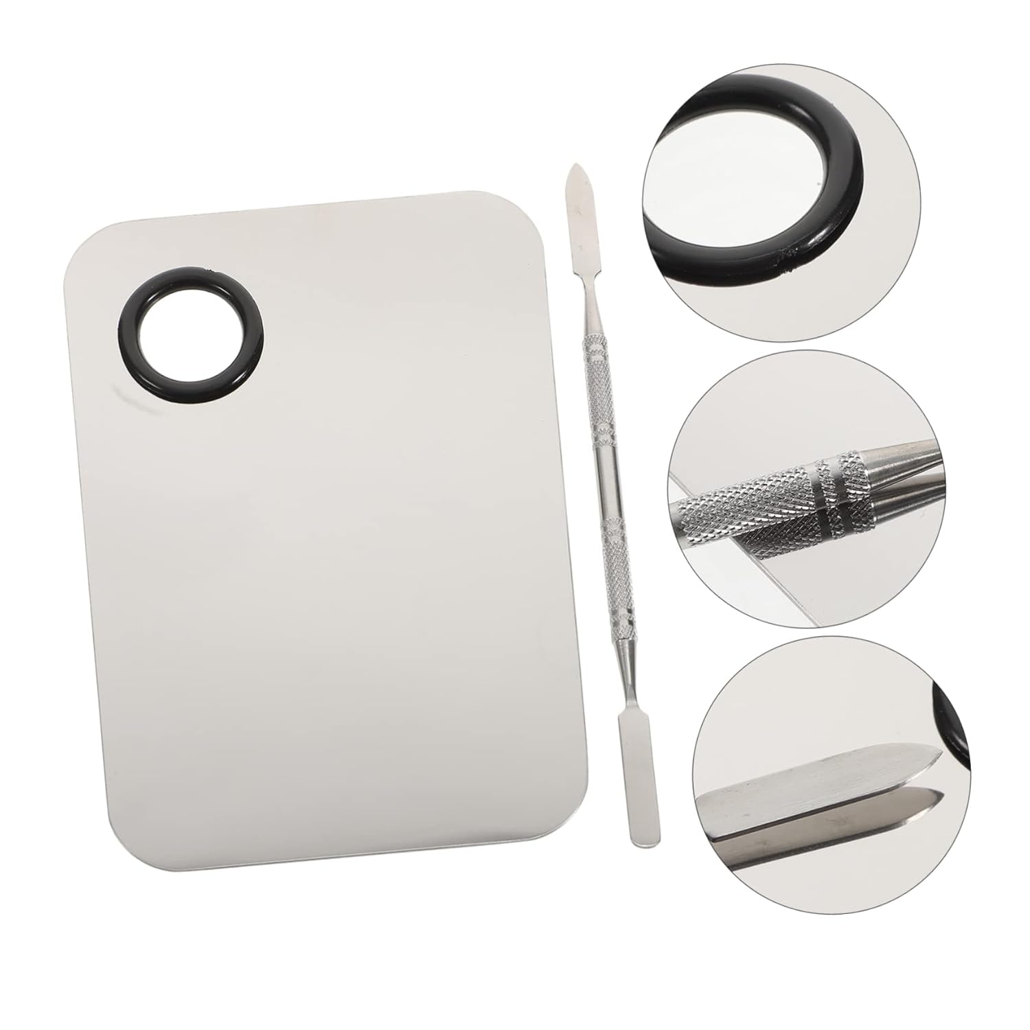 Color: silver,material: stainless steel,palette size: approx 15 x 10cm / 591 x 394 inch ( w),spatula length: approx 16cm / 629 inch,make up mixing plate,make up metal spatula
