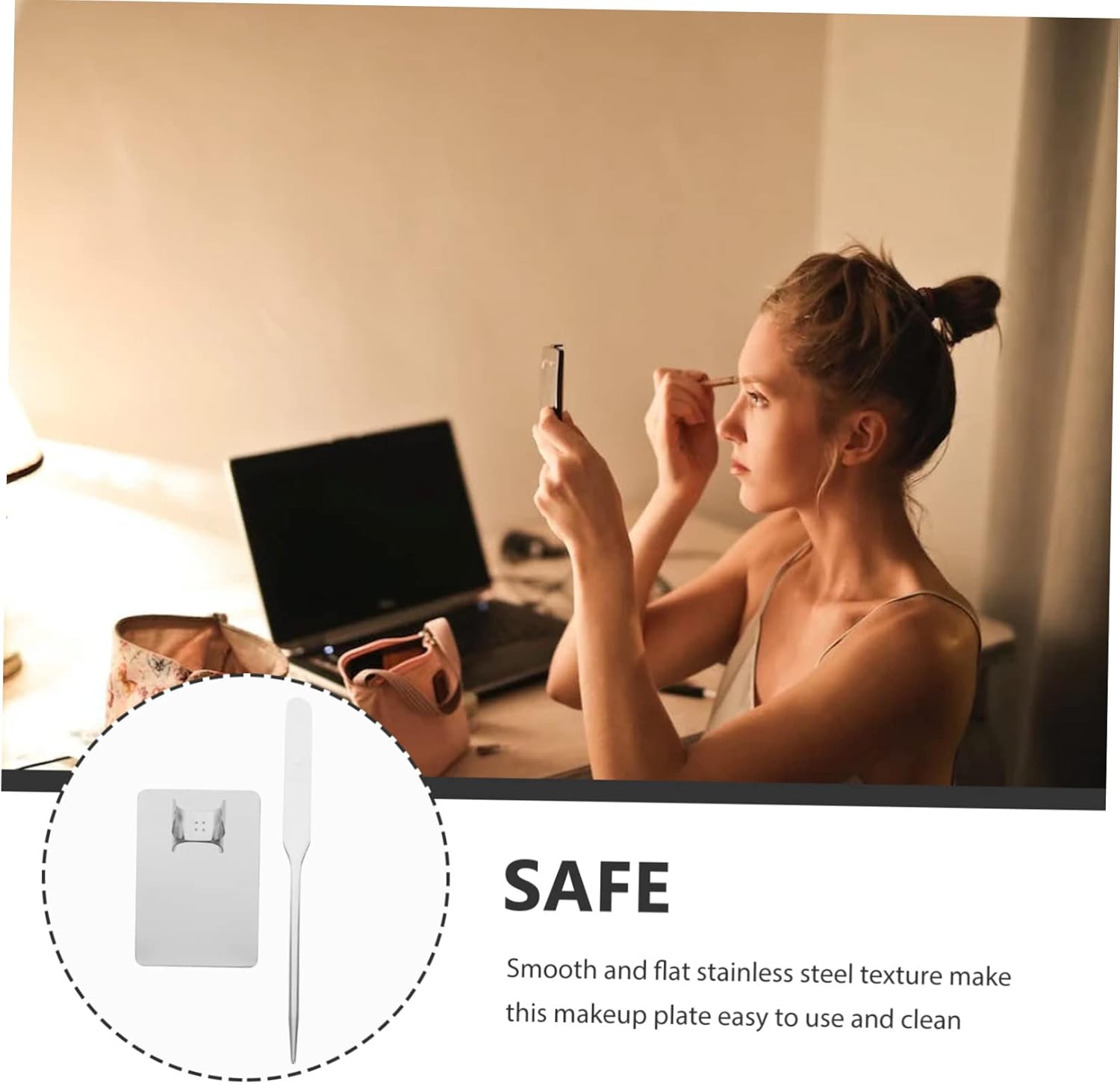 Foundation mixing spatula--the plate and spatula are made from stainless steel material, hard to break or deform, reliable in use,cosmetic spatula