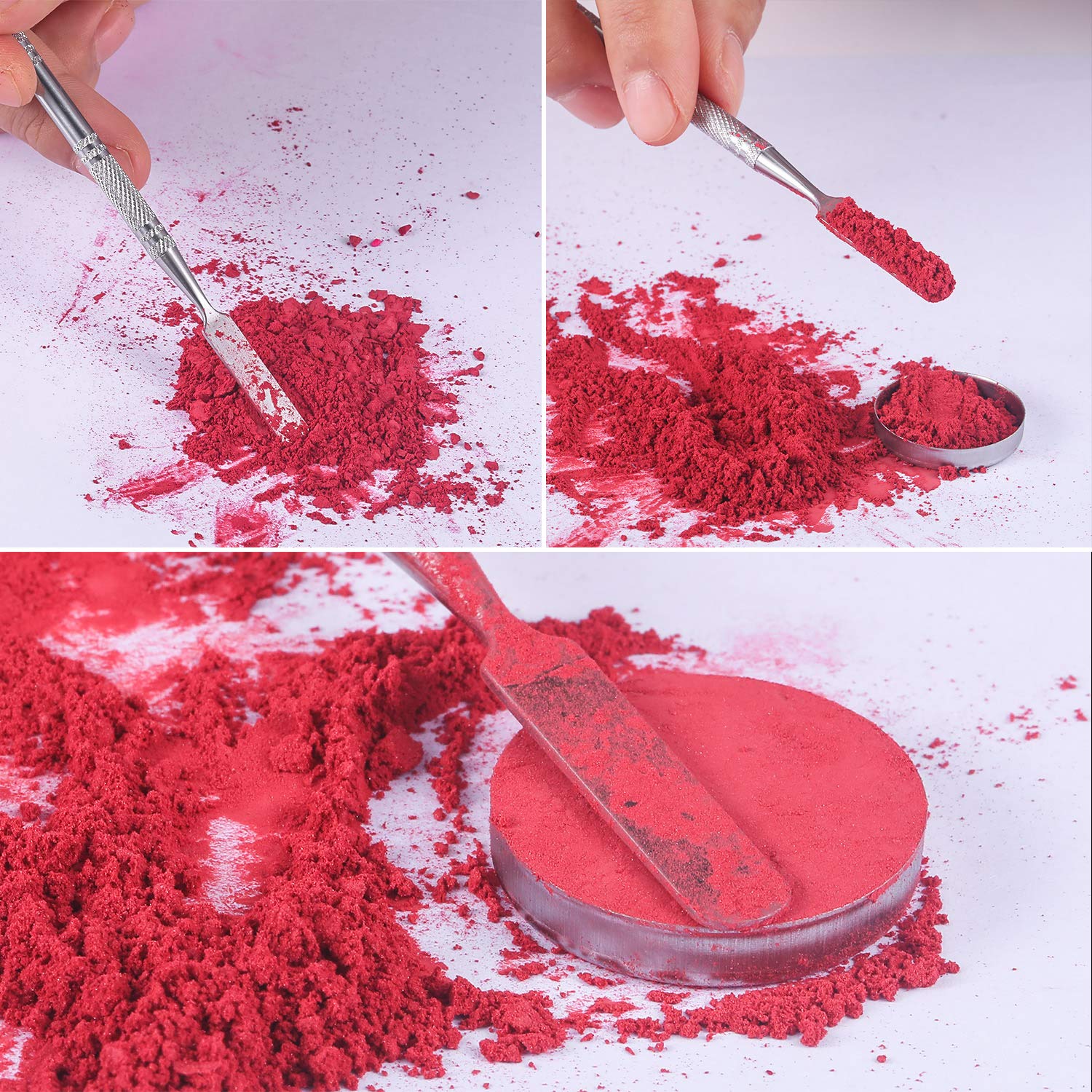Size detail: empty palette is 7.08 x 3.93 x 0.55 inch/ 18 x 10 x 1.4 cm (L x W x H)(Rectangle), 3.93 x 3.93 x 0.55 inches/ 10 x 10 x 1.4 cm (Square). Depotting spatula is approx. 6.26 inch/ 15.9 cm. Rectangle metal stickers are 17 x 14 mm (L x W). Round palette sticker is 25 mm in diameter