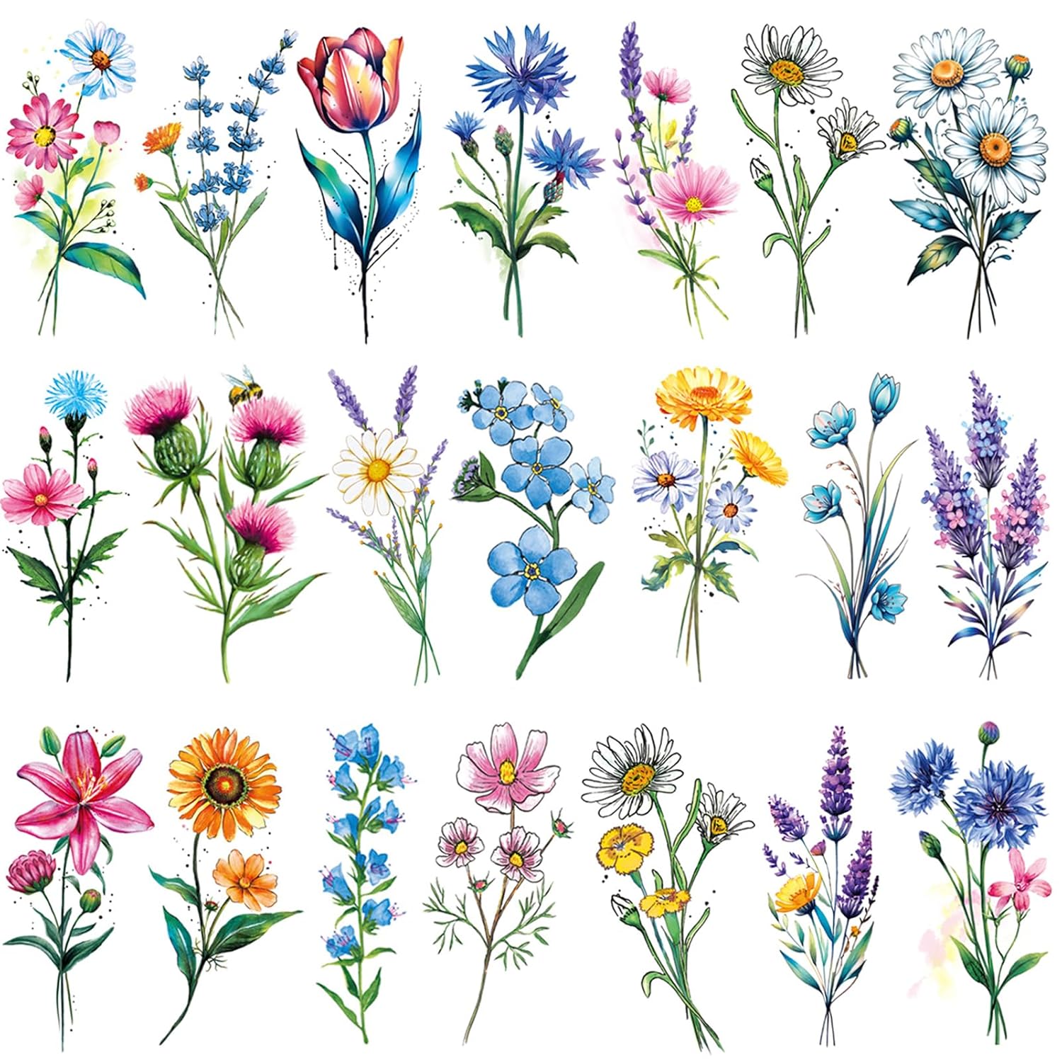 【Small flower temporary tattoo】Tazimi brand original floral female tattoo, with 20 sheets of 80 different styles of watercolor wildflower fake temporary tattoo stickers, including roses, butterflies, daisies, birds, orchids, tulips, lilies, lavender, dandelions, small flower patterns, realistic temporary tattoo stickers, these colorful small flower tattoo design suitable for women girls, size is 3.77*6.79 inches, 3D DIY watercolor flower custom tattoo is great for body art.