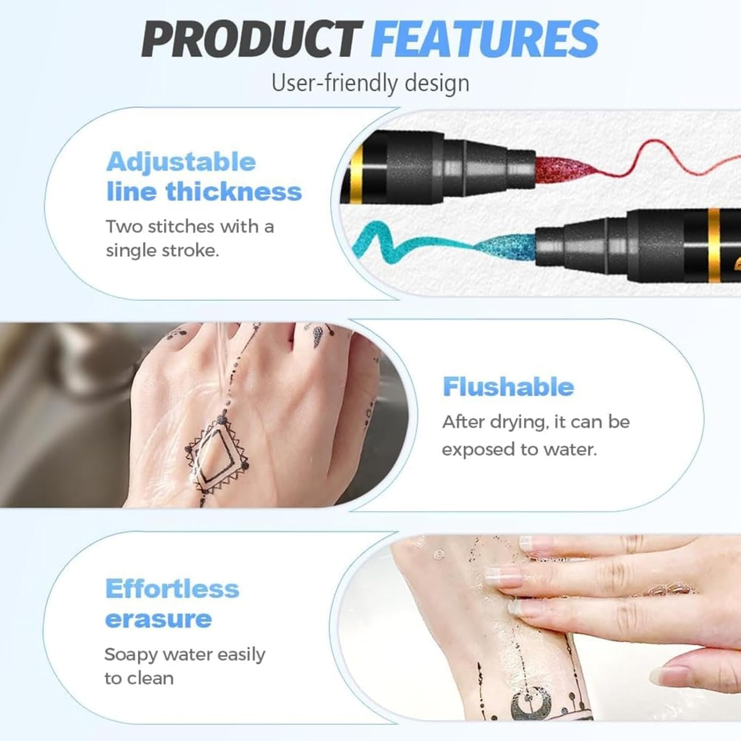 【10 Vibrant Colors】 Set includes 10 bright, vivid tattoo markers perfect for temporary tattoos, body art, and fun face-painting designs.