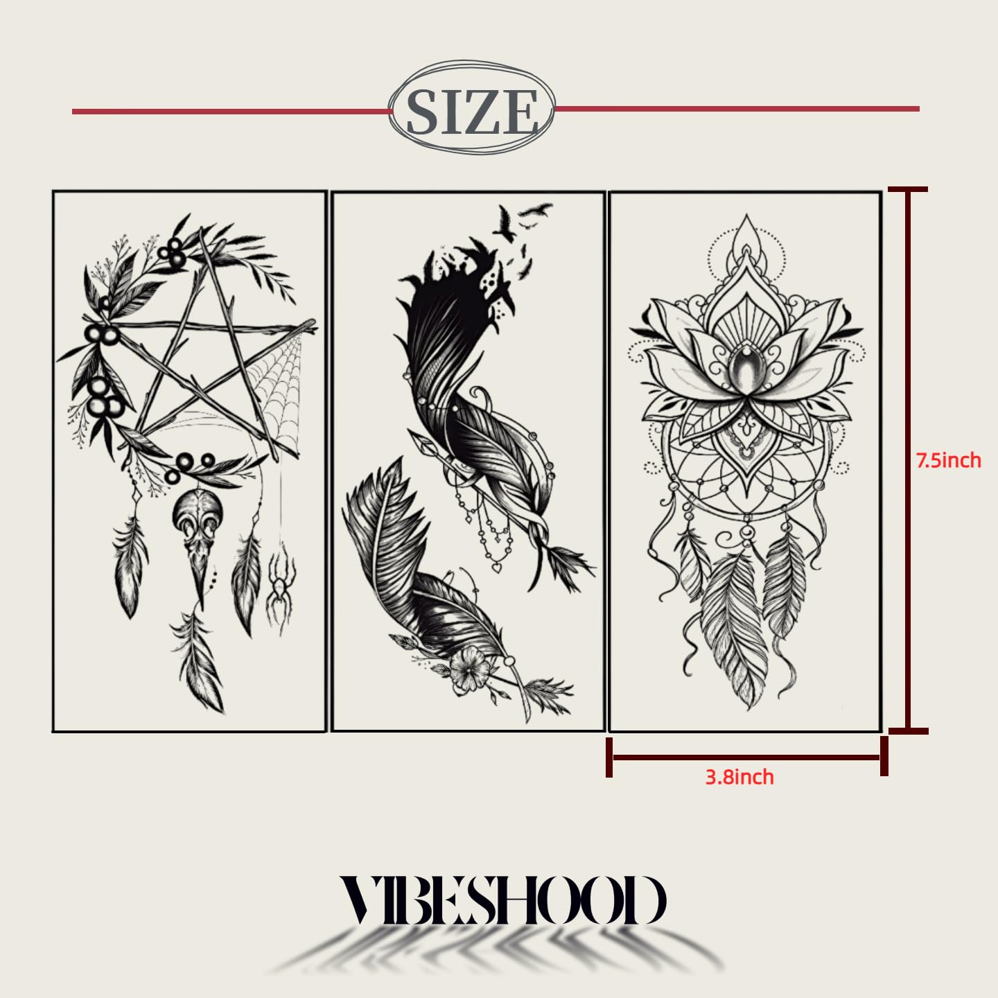 Temporary Tattoos Dreamcatcher Feather 3 Sheets Large Temporary Tattoo for Men Women Adults Waterproof Friction Resistant Low Reflective Lasts 5-7 day. Flying Feather and Dreamcatcher.