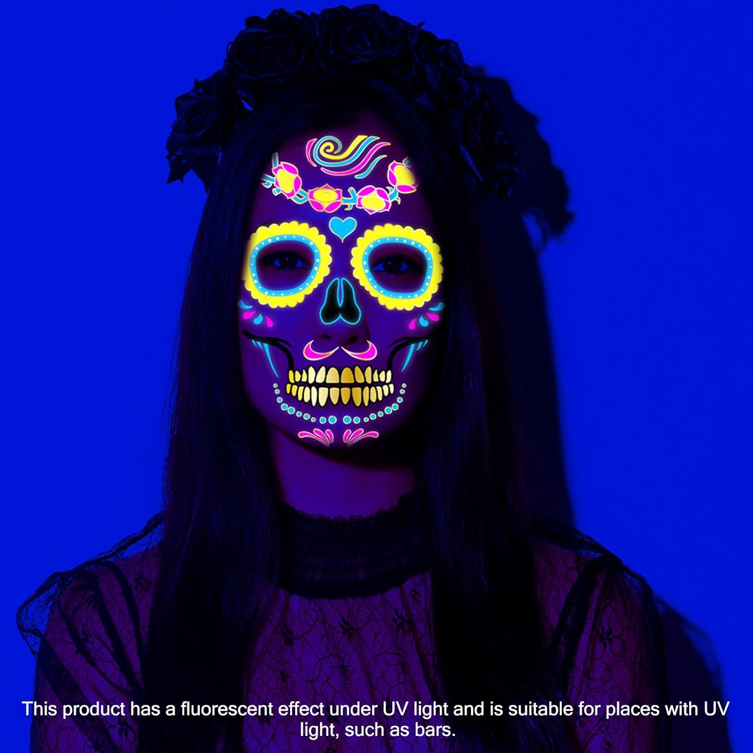 Perfect for Halloween & Day of the Dead – Enhance your costume with these UV stickers, designed in classic Mexican style for Dia de los Muertos, Halloween, and other festive occasions.
