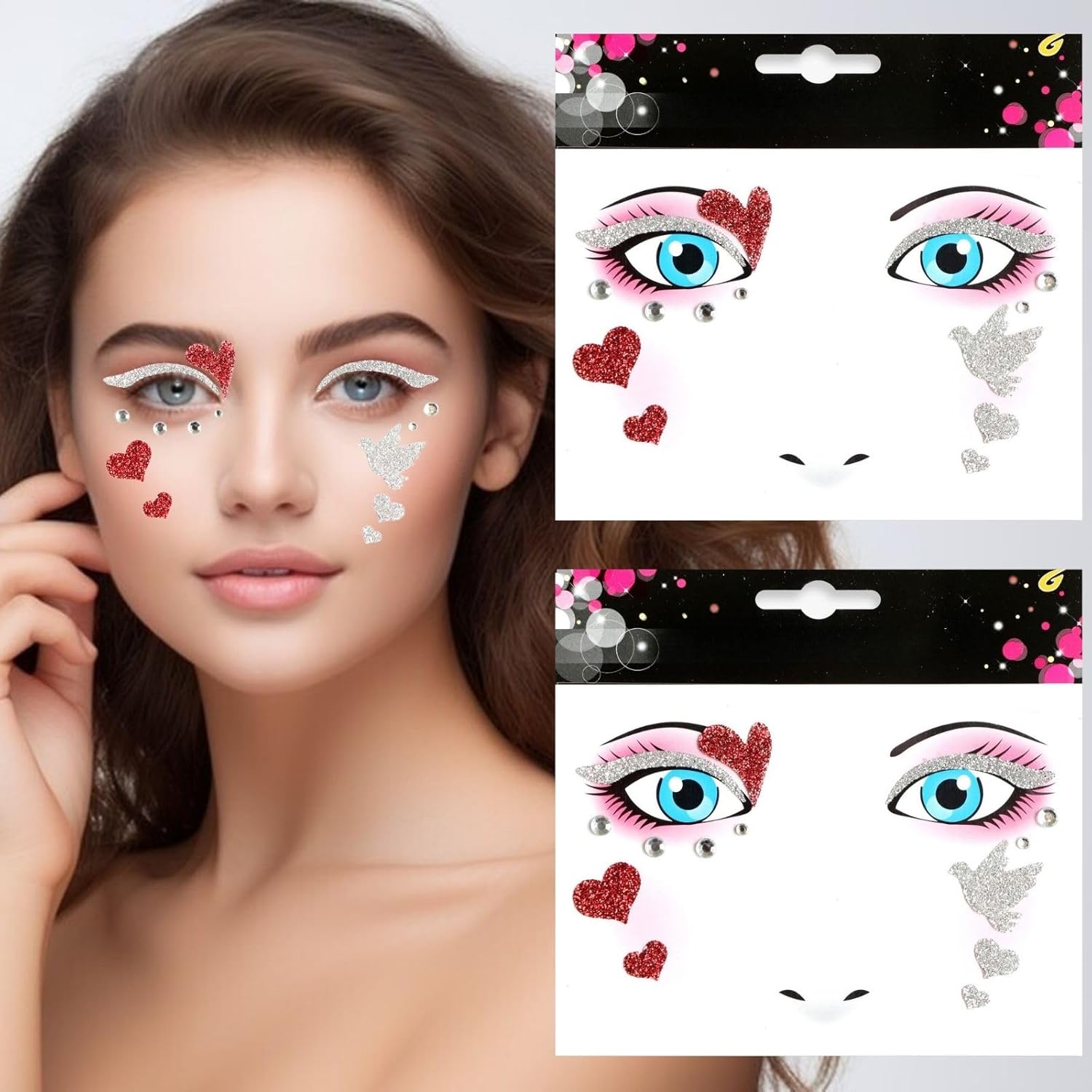 【Wide Application】These Valentine's Day diamond face art decor is great for parties, gatherings, dating, daily life, Valentine's Day, Christmas, New Year, holidays, wedding, birthday, anniversary, cosplay, stage performances, etc. Also is a great present for your mom, daughter, sisters, friends, families, neighbors and co-workers. Will be sure to add a sense of atmosphere and leaving a unforgettable memories.