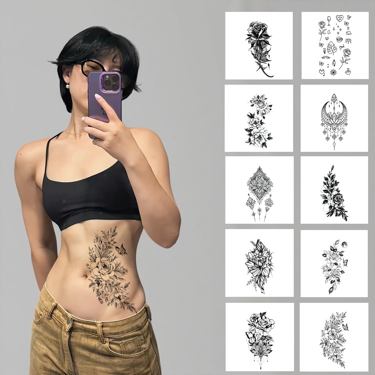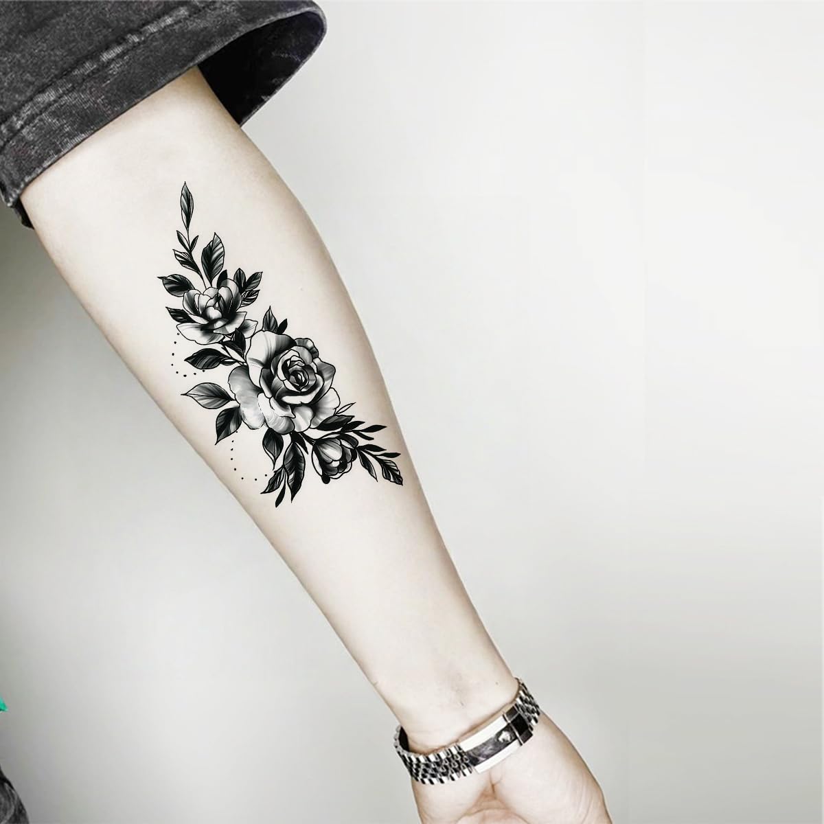 Realistic Floral Designs: Featuring detailed solid-color floral patterns that emulate real tattoo artwork. The collection includes both delicate and bold botanical designs to suit different style preferences.