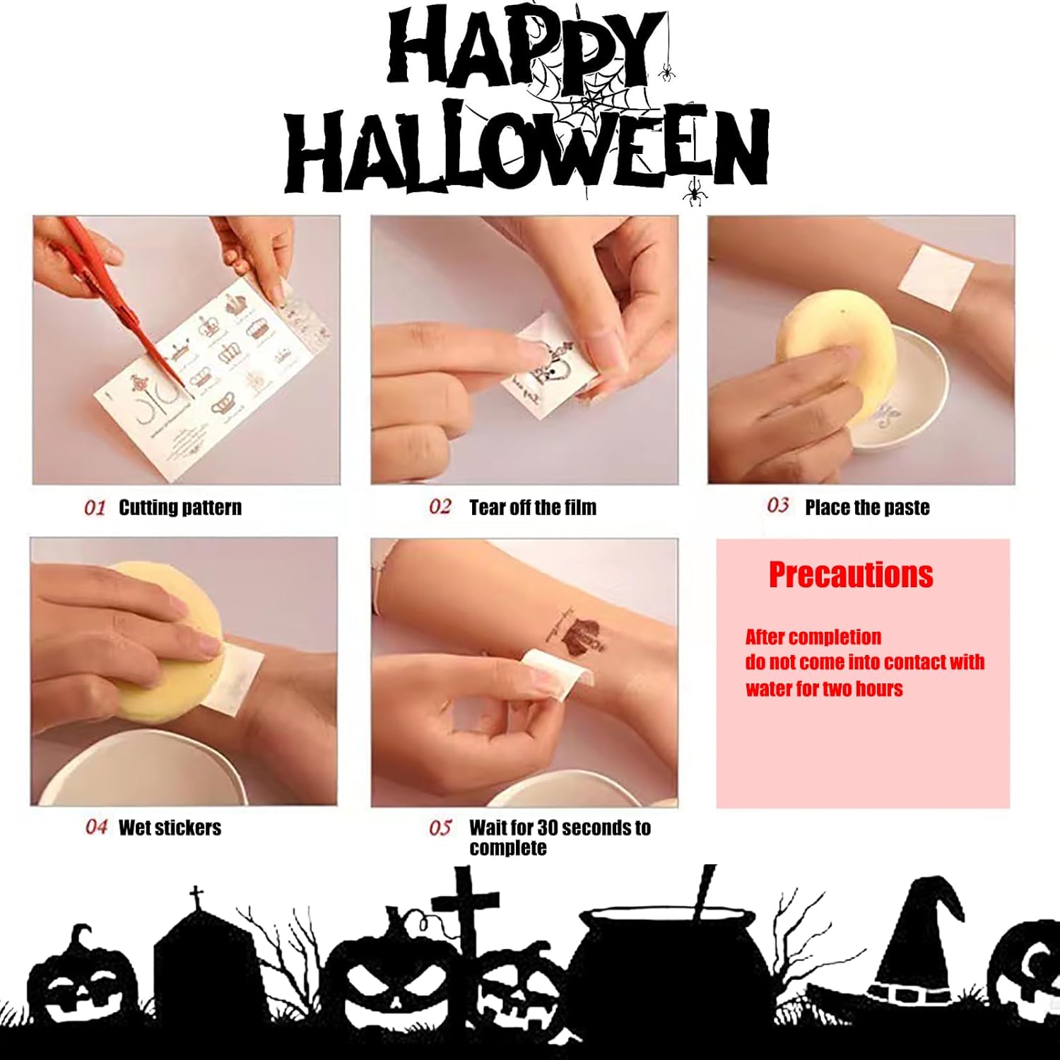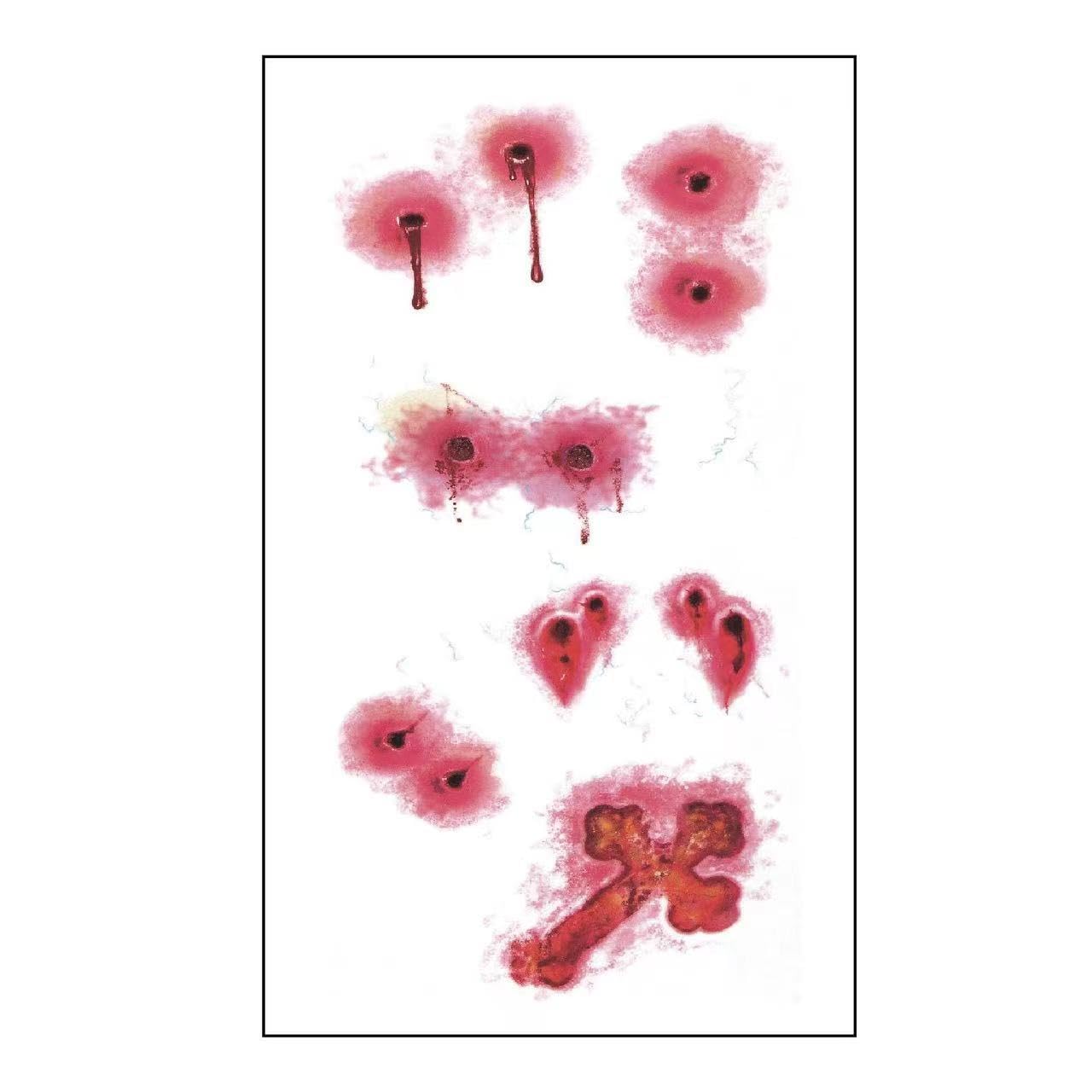 Instant Zombie Transformation:Apply in seconds: Press on clean skin, wet the back, peel – done! These zombie tattoos for Halloween create bloody gashes and surgical scars without makeup skills. Remove easily with oil/alcohol