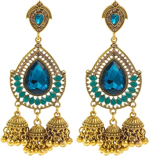 Boho Rhinestone Dangle Earrings | Vintage Chandelier Jhumka