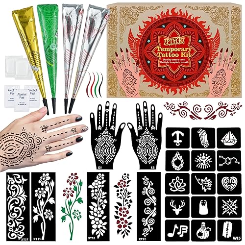 Brown Tattoo Stencils Kit - 4 Cones & Outline Pen