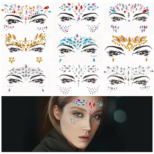 Face Gems Stickers - 9pc Temporary Tattoo & Makeup Jewels