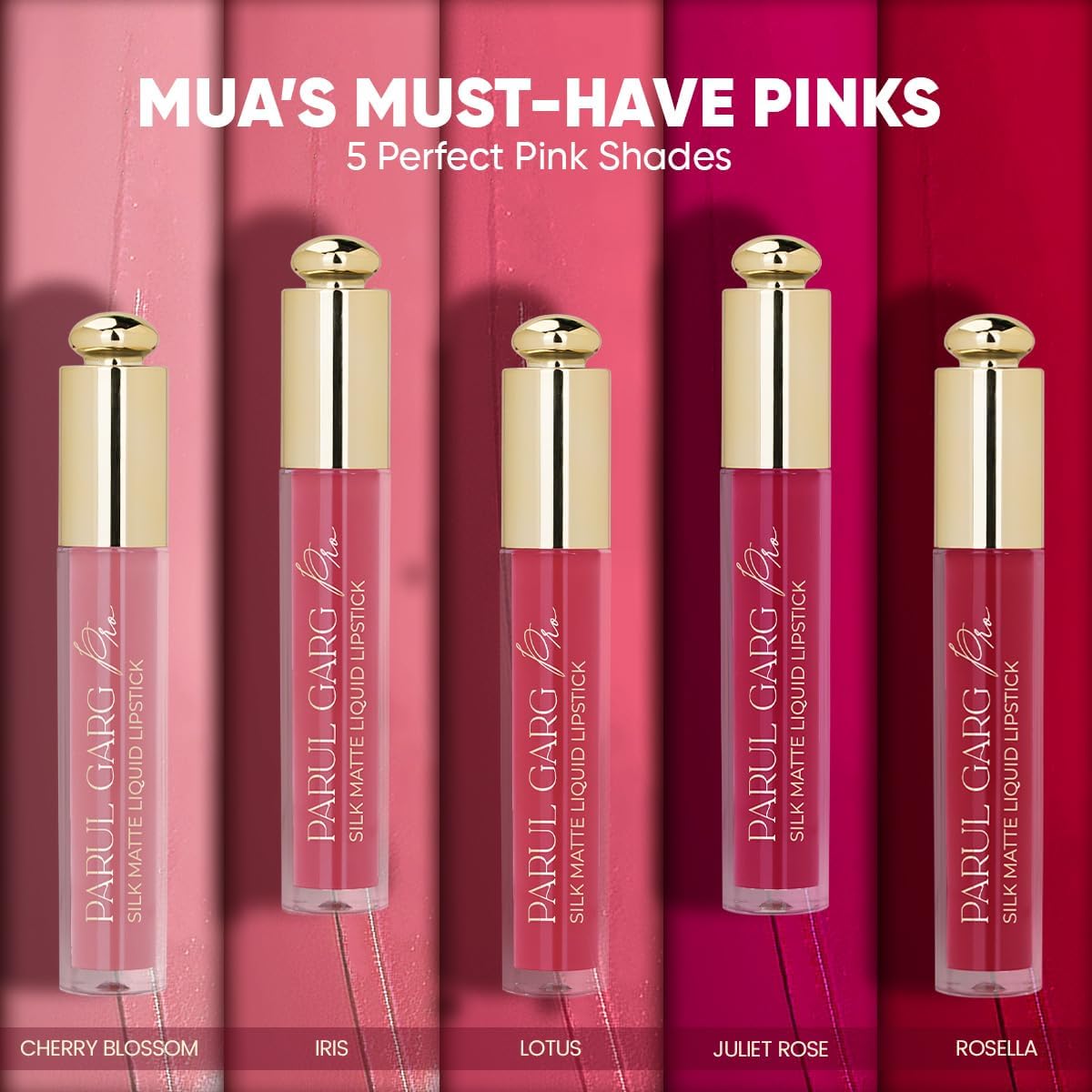 Parul Garg Beauty MUA’s Favourite Pack | 5 Silk Matte Liquid Lipsticks | Long-Wear, Smudge-Proof & Lightweight | 100% Vegan | Perfect for MUA Vanity | 3ml Each (Must Have Pink, 3ml each)