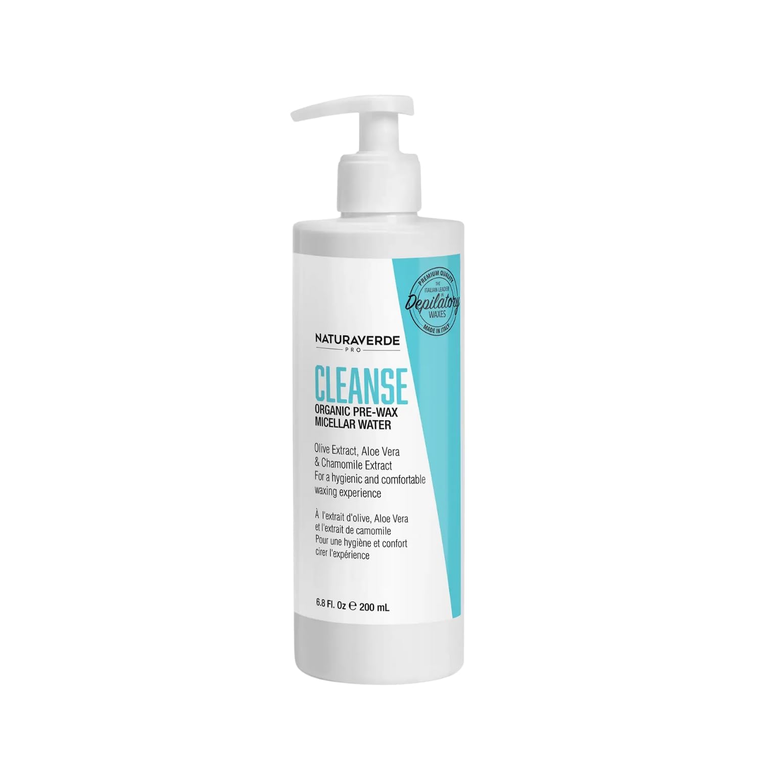 NaturaverdePro Cleanse Organic Pre Wax Micellar Water, Makeup Remover Facial Cleanser Skin Care Prep for Hair Removal, Added Chamomile Aloe Vera - 6.8 oz
