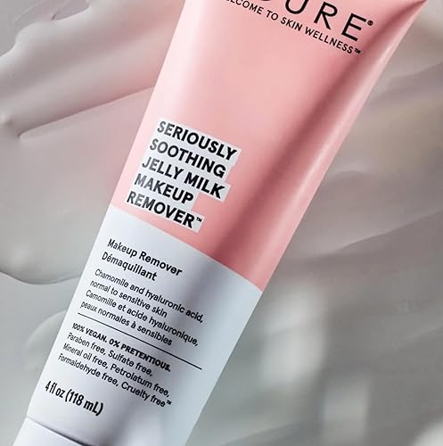 Acure Seriously Soothing Jelly Milk Makeup Remover - Waterproof Make Up Removal for Normal to Sensitive Skin - Moisturizing Finish - Milky Texture with Chamomile & Hyaluronic Acid -100% Vegan- 4 Fl Oz