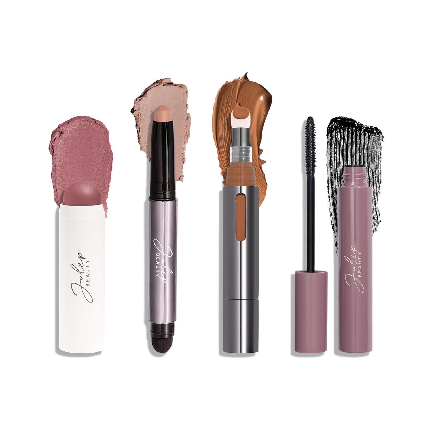 Julep Everyday Easy 4 Piece Kit with Eyeshadow 101 in Putty Matte, Length Matters Lengthening Mascara, Skip The Brush Cream to Powder Blush in Muted Mauve, and Cushion Complexion Concealer in Sand