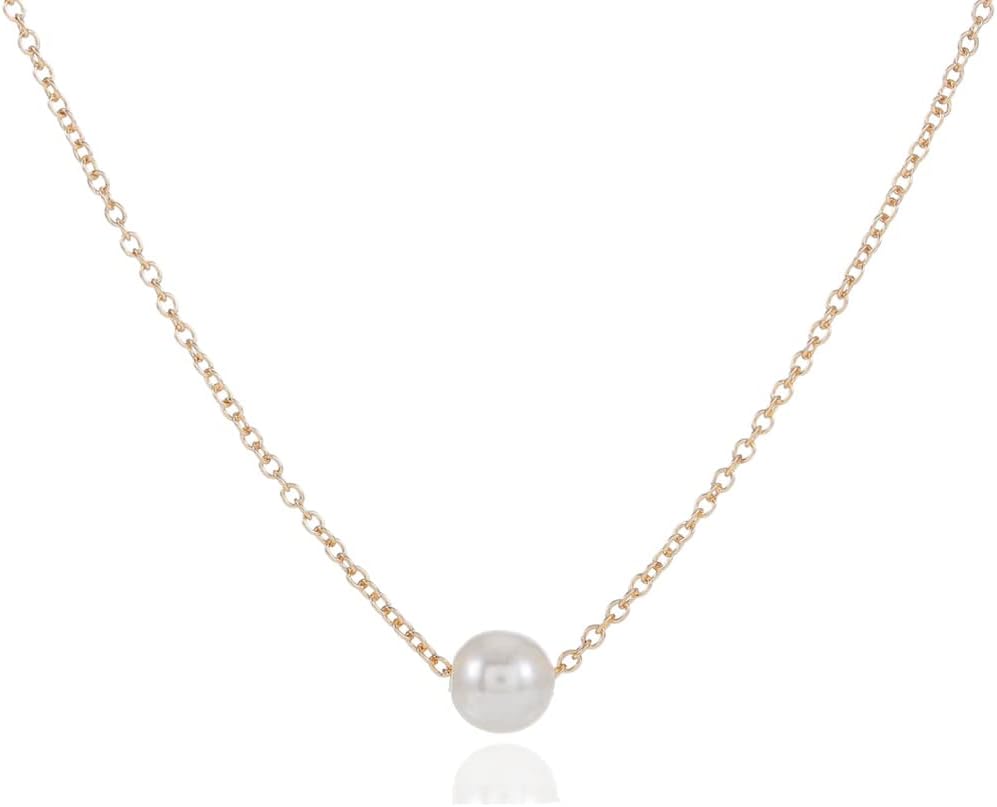 Mosako Single Pearl Pendant Necklace Chain Gold Necklace Short Necklaces for Women (Gold)