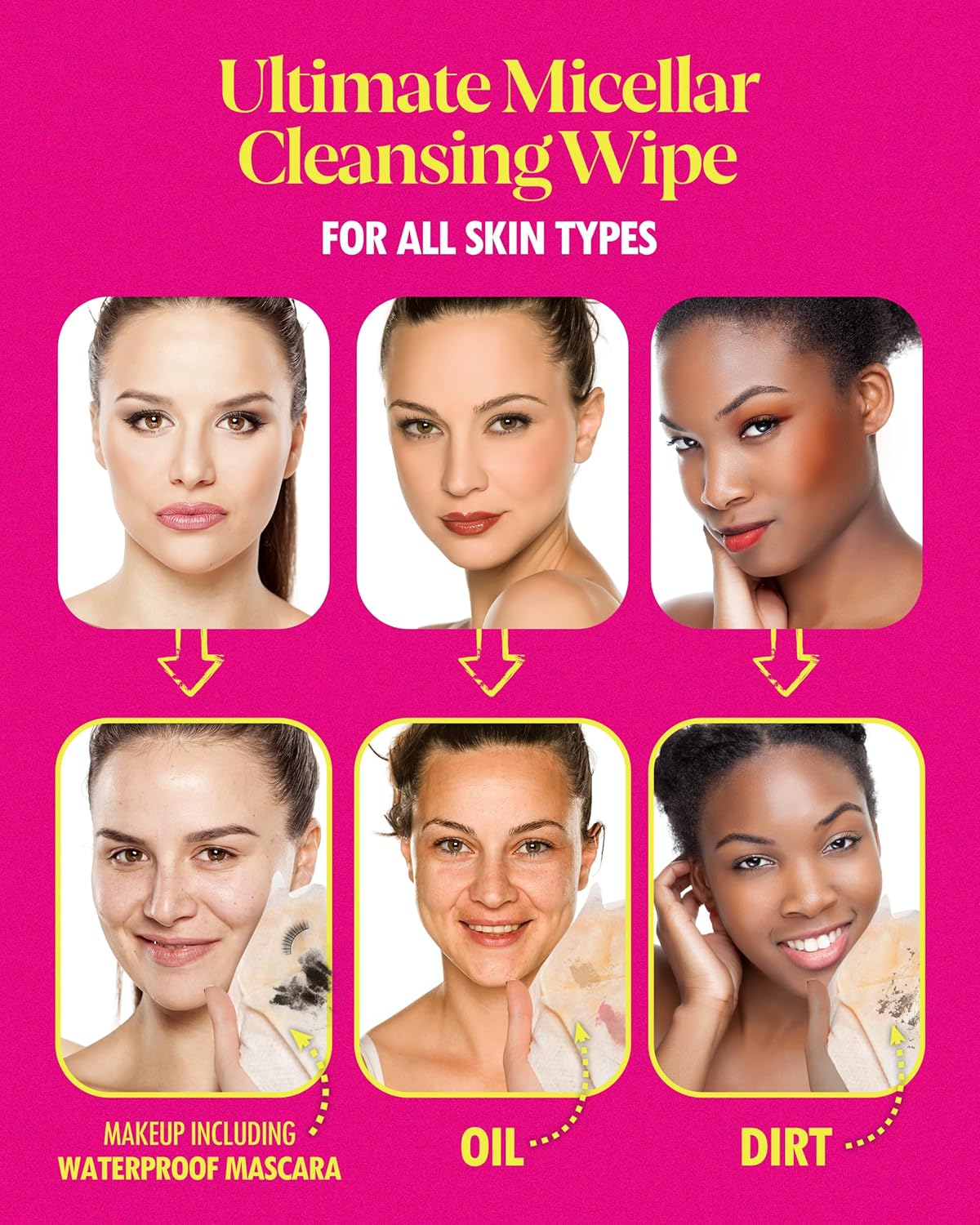 SUITABLE FOR ALL SKIN TYPES. Thoughtfully formulated with sensitivity in mind, these hydrating, micellar makeup remover are gentle on various skin types, including dry, oily, and troubled skin. This face wash wipes work to dissolve all traces of dirt and build-up residue, providing a pure, effortless cleansing and hydration in every swipe.