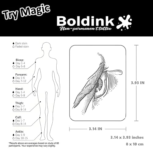 【Unique Product】Boldink temporary tattoos break the mold of traditional temporary tattoo stickers, distinguishing themselves from the simple fake tattoos of childhood. We specialize in creating waterproof, friction-resistant, and non-reflective tattoos that mimic the authenticity of real tattoos, providing consumers with a long-lasting experience of 7-14 days.