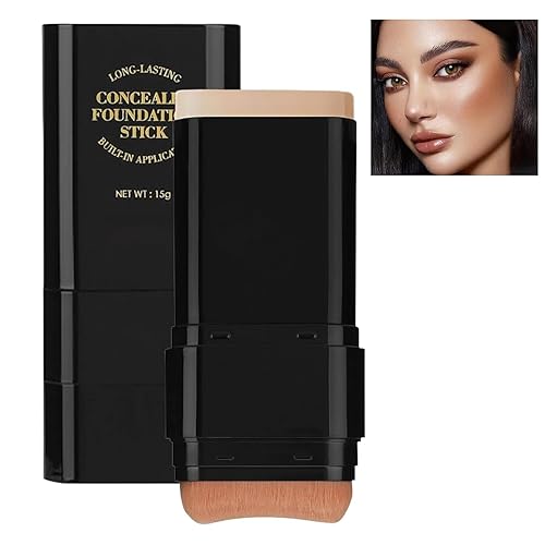 Quick and easy application: Featuring an innovative dual-end design, one end is a smooth and easy-to-mix foundation stick, and the other end is a soft M-shaped brush head. It fits the facial contours well and can be easily applied to details such as the nostrils, corners of the mouth and eyes. Whether it's for daily commuting or special occasions. This full coverage foundation can achieve quick makeup application!