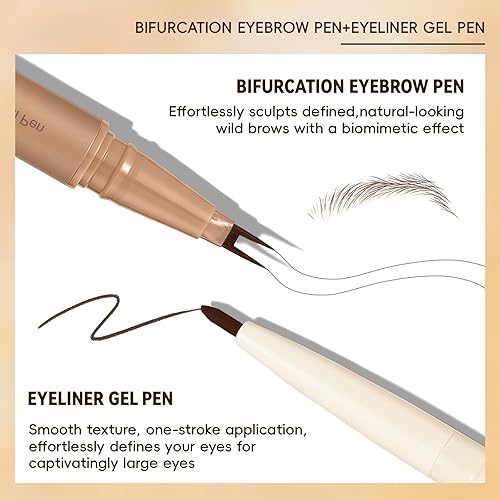 Dual Ended Designed: Ditch the clutter! Our innovative dual-ended eyebrow pen combines salon-quality tools in one sleek stick. One end features a precise micro-fork liquid tip creating ultra-fine, hair-like strokes to fill gaps and sculpt natural looking brows. The other end delivers a rich, creamy gel eyeliner that glides on effortlessly for smooth, defined lines. Perfect brows and flawless liner, instantly
