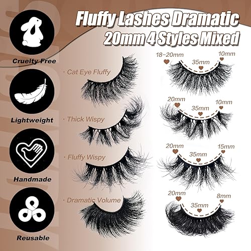 20 Pairs Thick Wispy Fluffy Lashes Pack for Versatile Styles: This 2 styles mixed faux mink eye lashes strips pack includes 20 pairs thick, soft, curly fake strip lashes.It's wispy and fluffy natural look lashes that suitable for any occasion, from daily wear to glamorous events