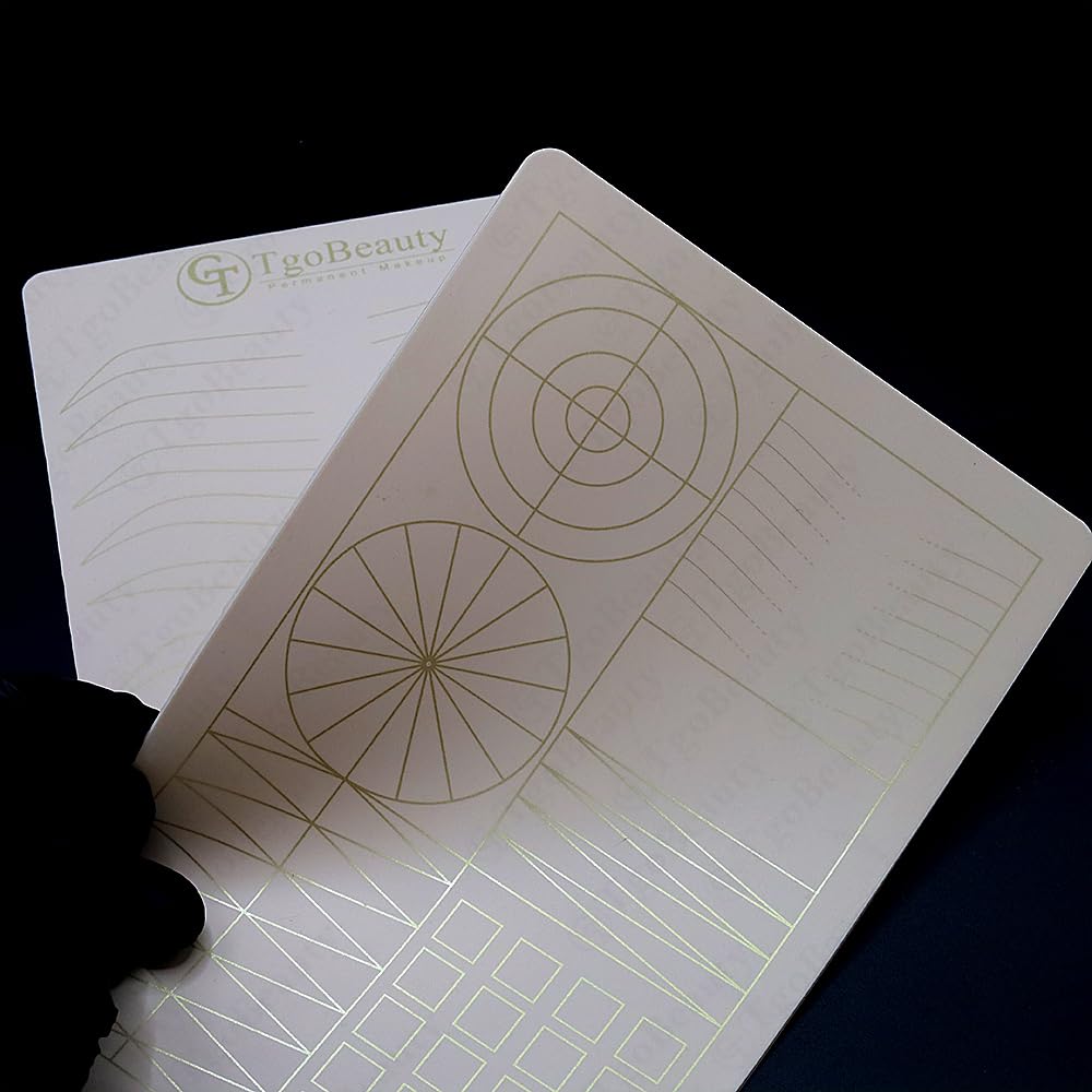 Develop Your Eyebrow Permanent Makeup Skill: our microblading practice fake skin sheet features 10 pairs different pre-drawn eyebrow shapes on the front and training elements (brows, geometric shapes, circles & grids) on the back – perfect for mastering different techniques!