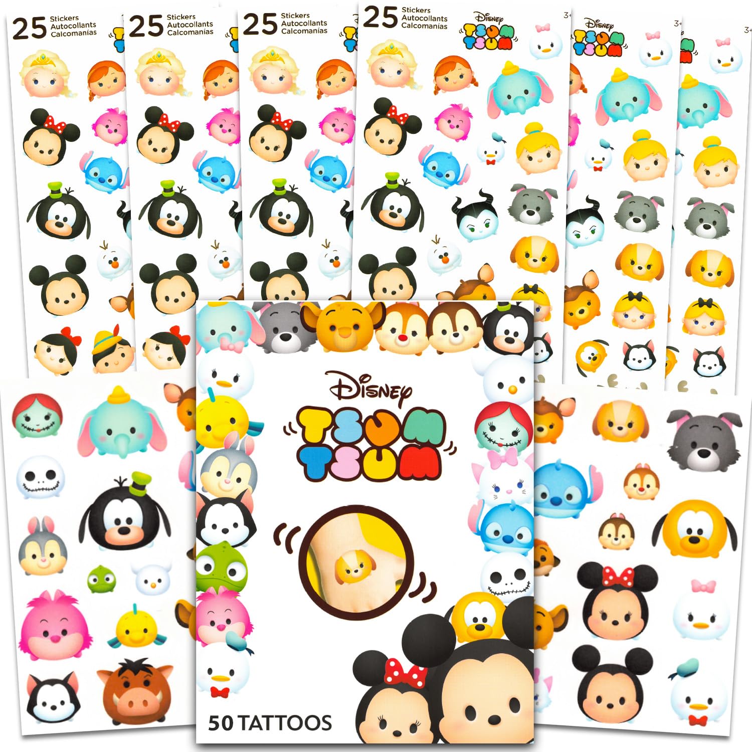 Disney Tsum Tsum Temporary Tattoo and Sticker Set - Party Favors Bundle with 50 Temporary Tattoos and 150 Stickers Featuring Mickey Mouse, Bambi, Dumbo, More | Disney Movie Themed Party.