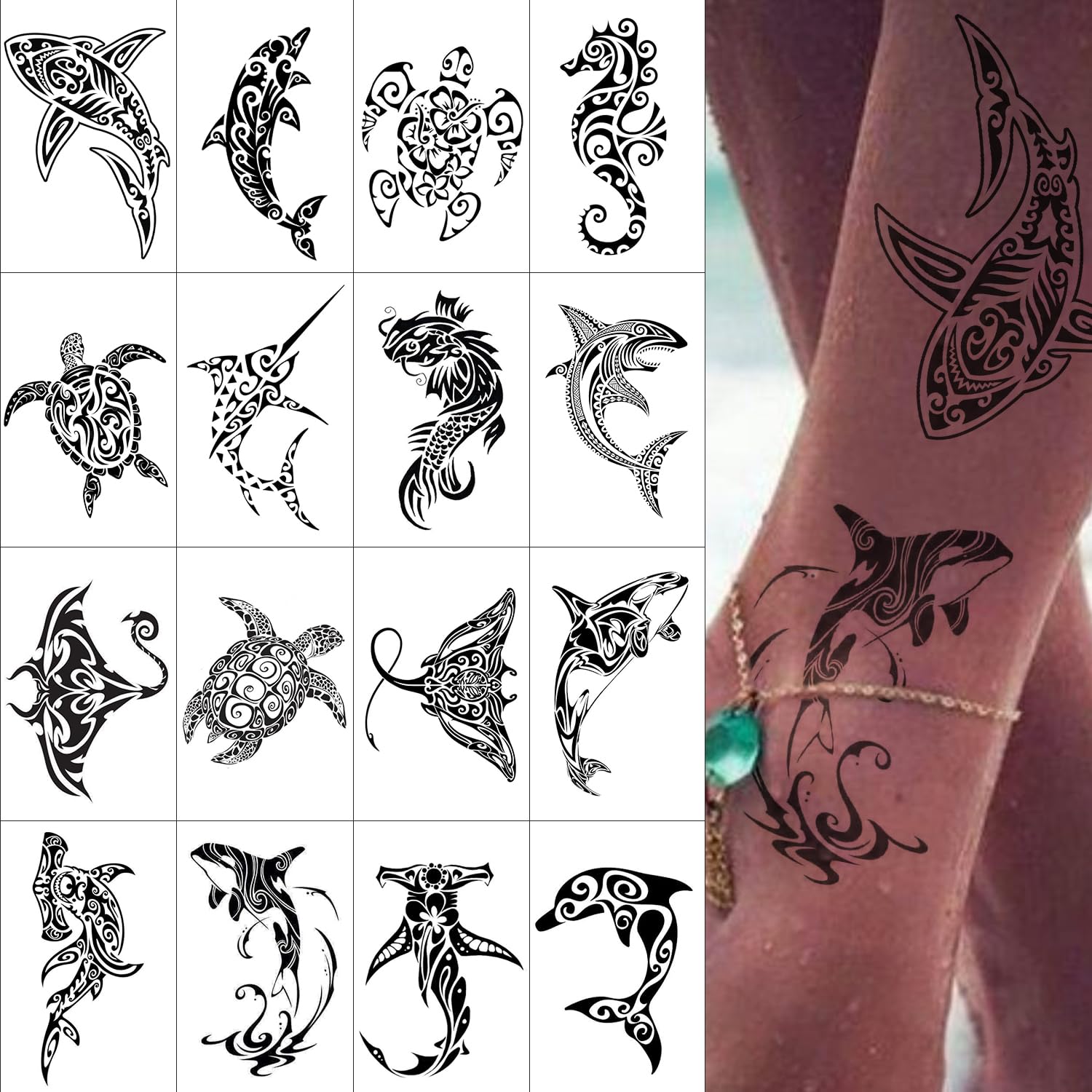 • Stunning Designs: 16 Pieces Cutout Design Totem Sea Creature Tattoo Stickers In Opp Pouch. Our Temporary Tattoo Stickers Feature Personalized Sea Creature Maori Stingray Shark Whale Hippocampus Polynesian Tribal Hawaiian Fake Tattoos Designs, Perfect For Those Who Wish To Decorate Their Skin For Daily Or Party Use. You Can Also Choose To Stick It On Other Parts Of Your Body To Create Any Decoration You Like, Such As Shoulders, Arms, Collarbones And So On.Size: 4.13" X 2.36" / Sheet.