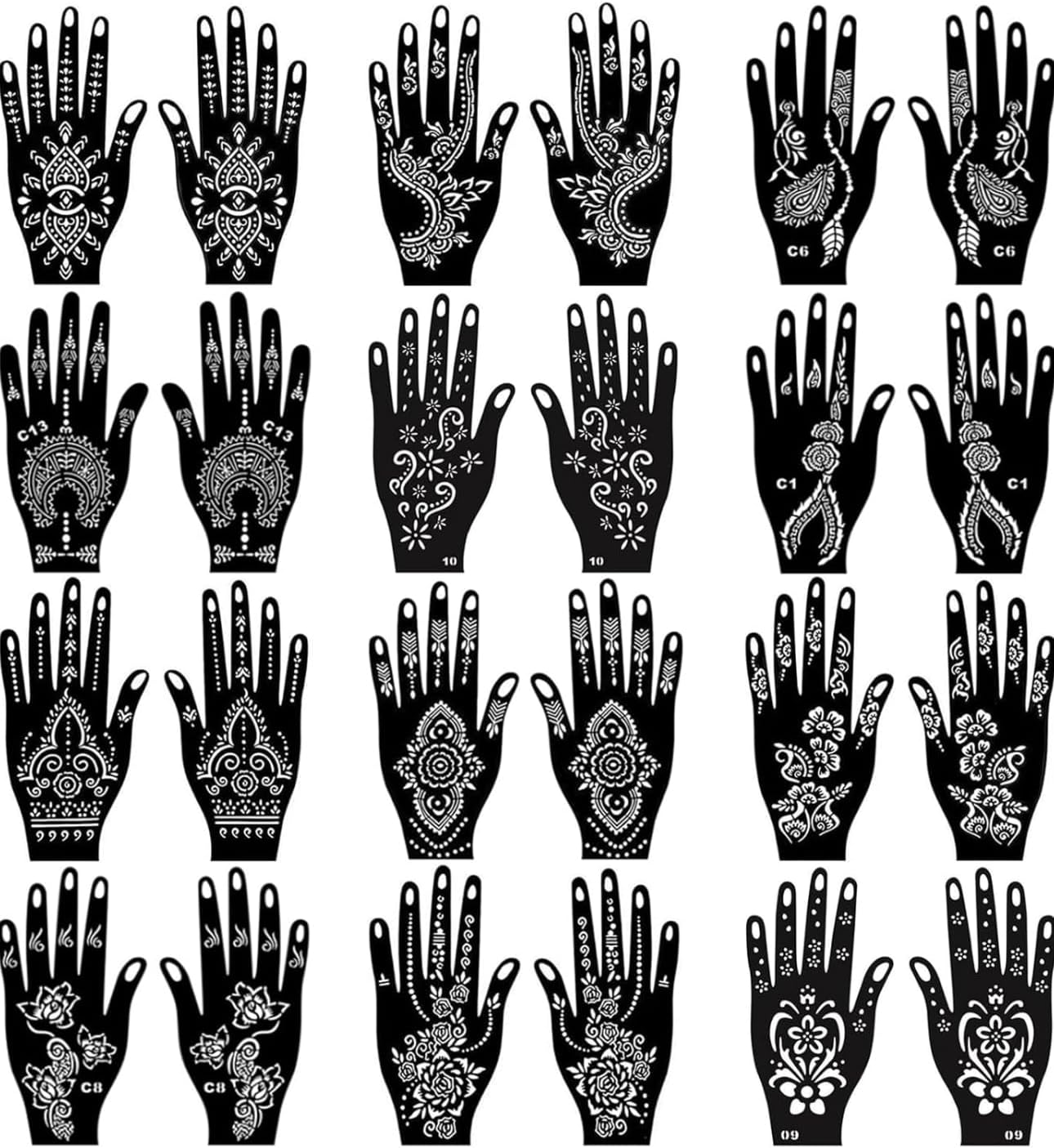 12 Henna Stencils with Black and Maroon Henna - Design Varies