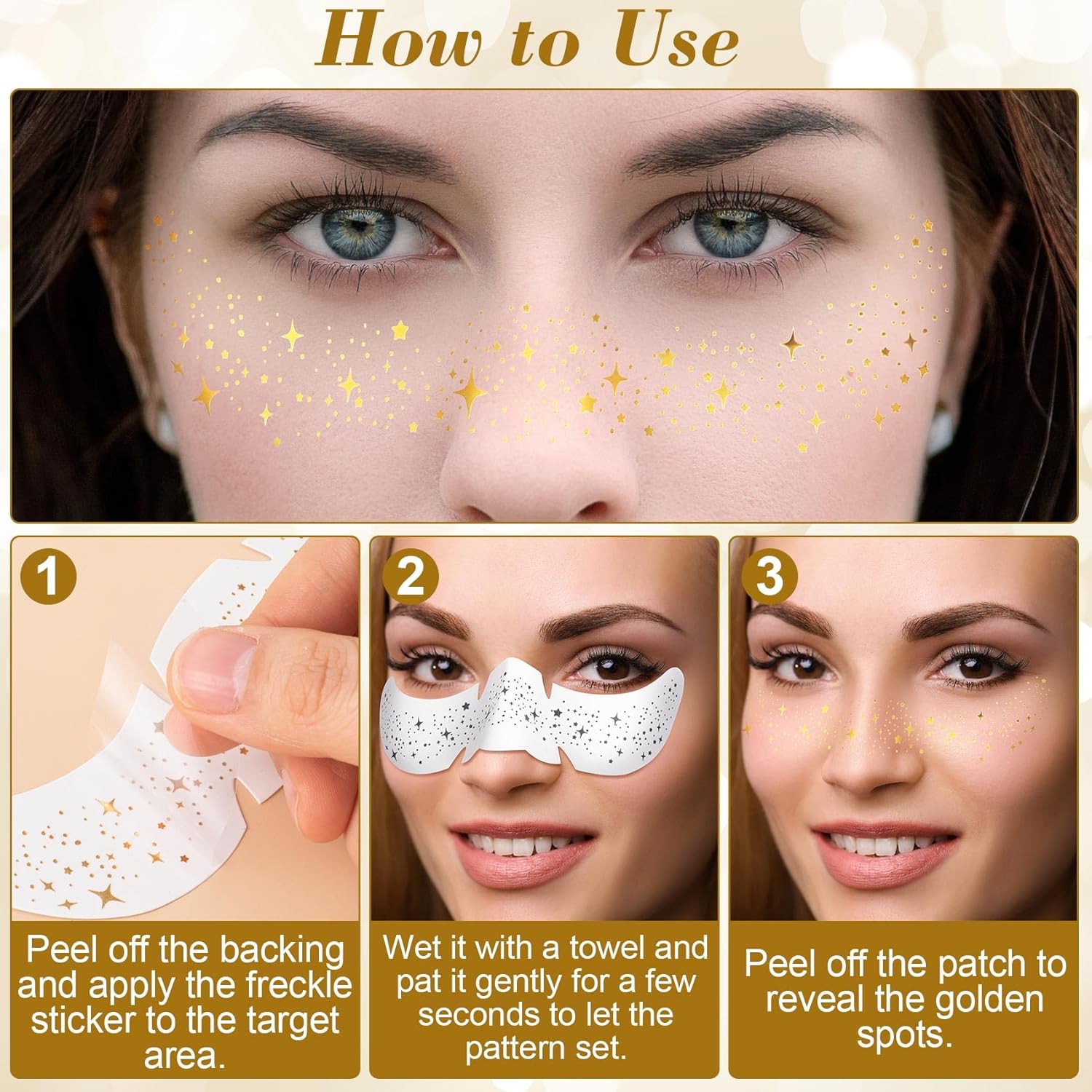 Package Includes: You will get 6pcs gold glitter freckles face tattoos. The sufficient quantity can meet your daily needs of use and replace, and you can also share them with your friends