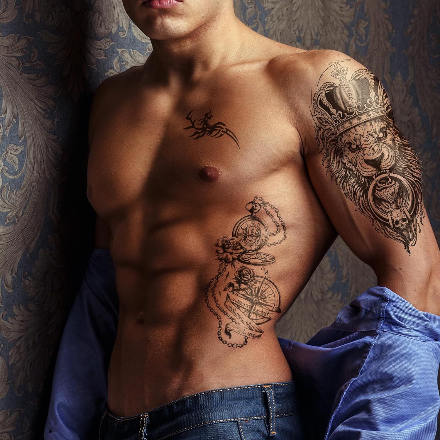 • 42 Unique Temporary Tattoos for Men:This temporary tattoo kit for men includes 42 sheets of high-quality, realistic designs like Flower Wing Cross Lion Wolf Skull Dragon Snake Sword Scorpion and Cow. Perfect for men, boys, and teens who want to express their bold style with cool, edgy body art