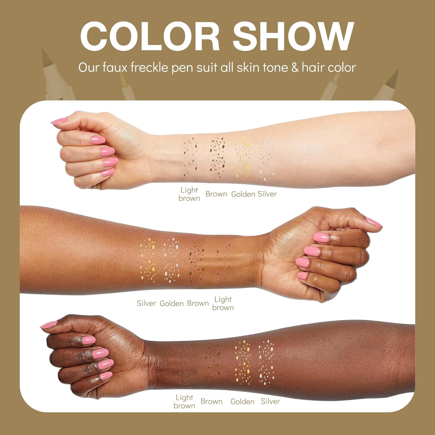 Freckles Pen Makeup Set: Available in four stunning shades - gold, silver, light brown, and dark brown - this glitter freckles face tattoo tool allows you to create fake freckles that natural, shimmer and sparkle, effortlessly blending with your skin tone